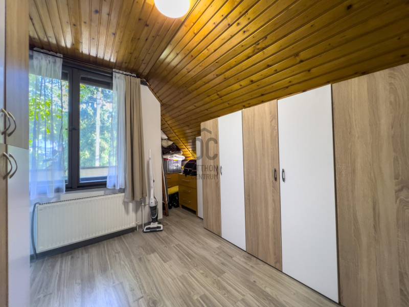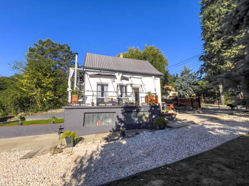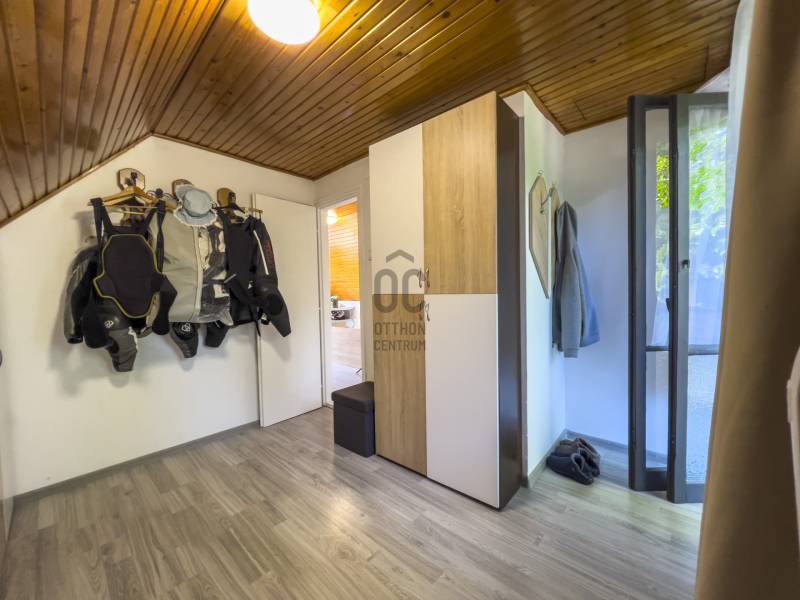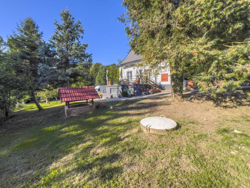 A telek végében ősfás erdő, kertben gyümölcsfák vannak.Ház alatt garázs ás tároló található..A házban található:Földszint: