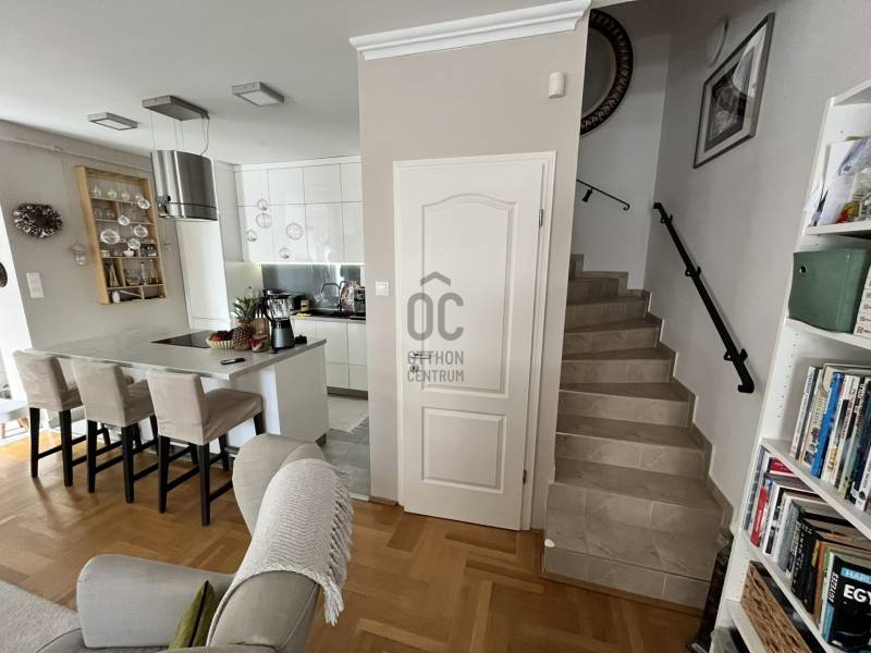Eladó Budapest közkedvelt, csendes, zöld, kertvárosi környezetében a XV. kerületben, Pestújhelyen egy tágas, modern, 3 szintes, önálló előkerttel rendelkező sorházi lakás.- építés éve: 2007- lakóterület: 120nm, 3 szint, 3 + 2 fél szoba - földszint: nappali, konyha, kamra, fürdőszoba és tároló, a bejárat előtt 12nm terasz, valamint összesen 50nm saját használatú kert - 1. emelet: két félszoba, hálószoba és fürdőszoba - 2. emelet: beépített tetőtéri szoba, fürdőszoba- fűtése: gáz-cirkó, szobánként szabályozható, okostermosztátokkal.- földszinti fürdőszobában és a konyhában pluszban elektromos padlófűtés került beépítésre- a földszinten és az 1. emeleten elektromos redőnyök, okosvezérléssel- nyílászárók: műanyag, szigetelt duplaüveges, szúnyoghálós- távfelügyeletre kötött riasztórendszer- hűtő fűtő klímák- udvari autó beállóEz a kivételes ingatlan lehet a következő otthonod, ahol családod minden tagja megtalálja a számításait! A Budapest 15. kerületében, Pestújhely szívében található ház tökéletes választás azok számára, akik tágas, világos és modern életteret keresnek. Az ingatlan alapterülete 120 nm, amely öt szobával és három fürdőszobával rendelkezik, így bőven van hely a család minden tagjának. A tágas nappali nemcsak a közös pillanatok színtere, hanem egyben a családi összejövetelek ideális helyszíne is. A konyhaszigetes amerikai konyha pedig a modern életstílus kedvelőinek kínál kényelmet és praktikusságot. A ház nagyon jó állapotban van, 2007-es építésű, azóta több modernizációs felújítás és átalakítás történt, a gáz cirkó fűtés pedig biztosítja a kellemes hőmérsékletet a hideg téli hónapokban. A 50 nm-es előkert lehetőséget ad arra, hogy saját kerted legyen, ahol élvezheted a reggeli kávéd, vagy egyszerűen csak pihenhetsz a friss levegőn. A környék ellátottsága kiváló: boltok, éttermek és iskolák mind a közelben találhatóak, így a mindennapi élet minden igényét kielégítik. A csendes utcák pedig biztonságos környezetet biztosítanak a gyerekek számára, akik nyugodtan játszhatnak a szabadban. A közlekedés is remek: 5 perc sétával elérhető a 7/7E/8E/133E/108E buszvonal, a város egyéb tömegközlekedési lehetőségei könnyen elérhetőek, így a munkahelyed vagy a belváros gyorsan és kényelmesen megközelíthető. Ez az ingatlan nemcsak egy ház, hanem egy igazi otthon, ahol a család minden tagja jól érezheti magát. A modern dizájn és a praktikus elrendezés mellett a környék nyugalma és biztonsága is hozzájárul ahhoz, hogy itt szeretni fogod az életet. Ne habozz, ha kérdéseid lennének, bizalommal kereshetsz! Szívesen segítek minden információval, amire szükséged van ahhoz, hogy megtaláld a tökéletes otthont!Ez az ingatlan a \"Felező csomag\" megbízási portfólióhoz tartozik. Részletek az Otthon Centrum weboldalán.
