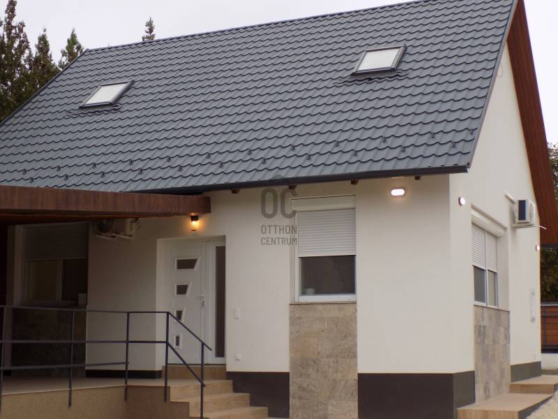 1 remek lehetőség, 2 gyerekkel, 3 %-os hitellel, 4 szobával + nappalival!Érd kellős közepén, jól megközelíthető helyen eladó ez a 2025-ben teljeskörűen felújjított nettó 98 + 24 nm-es (fedett terasz) családi ház!A telek összközműves, sík, rendezett, az épület már eredetileg is egy jól megépített lakóház volt, innenfejlesztette a jelenlegi tulajdonosa, tetőtér ráépítéssel és teljes felújjítással.Az épület alsó szintjére a nappali-étkező-konyha egy légtérben került, illetve 2 hálószoba és egy fürdőszoba-wc is helyet kapott.A tetőtérbe egykényelmes lépcsőn jutunk fel, itt ugyancsak 2 szoba és egy mosdó/wc található.A kiváló tájolású (DNy) és alaprajzú épület, korszerű kazánnal, 2 db hűtő-fűtő klímával, éjszakai árammal,motoros redőnyökkel, szúnyoghálóval, ugyancsak motoros automata kapuval, riasztórendszerrel, egyszóval korszerű felszereltséggel rendelkezik és minden új!!A homlokzat 15 cm-es dryvit szigeteléssel, a födém és tetőtér ugyancsak 15 cm-es ásványgyapot szigeteléssel gondoskodik arról, hogy az épület energetikailag is a mai követelményeknek megfeleljen.A nagyméretű fedett terasz a házhoz kapcsolódva (így 3 oldalról zárt), szélvédett, kellemes kint tartozkodást nyújt tavasztól őszig!A sík nagy telek akár 4-6 vagy akár mégtöbb autó beállására is alkalmas!Az ingatlan városon belüli elhelyezkedése folytán a tömegközlekedés, az üzletek, óvoda, iskola, gyógyszertár, orvosi rendelő, stb. gyalogosan is megközelíthetők.