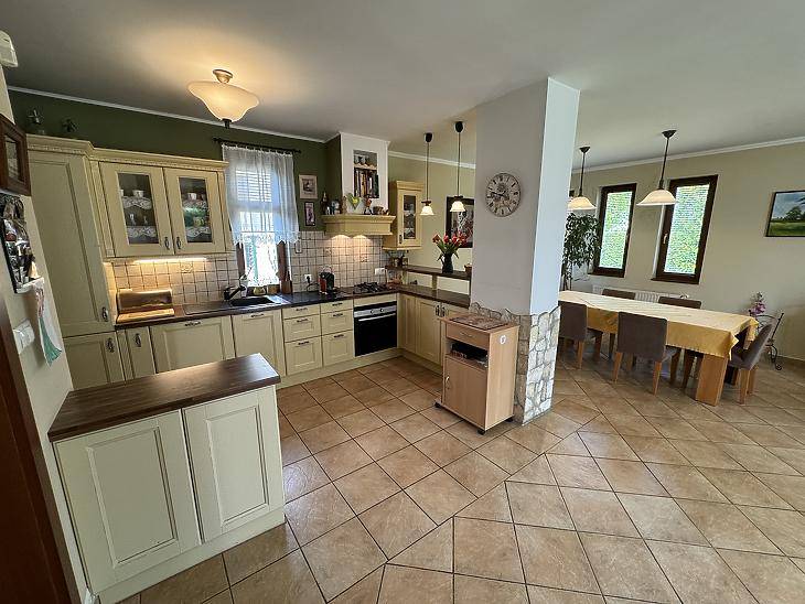 ÜRÖMÖN A RÓKAHEGYEN ELADÓ EGY KIVÉTELES, NAPOS ÉS TÁGAS CSALÁDI HÁZ!Telek mérete: 515 nmA KÖRNYÉK:Budapest határa mellett egyből, egy kiváló közegben elhelyezkedő, színvonalas családi házas övezet. Fiatalos környezet, tágas, karbantartott utcák, kedves, igényes lakóközösséggel. Csillaghegy 5 perces távolságban van autóval. Az Ürömi Hütte 750 méterre van, az Ürömi Napraforgó Óvoda és a József Nándor Általános Iskola 2 km-re van. Az Új LIDL 2,9 km-re található, a Csillag Center 4,5 km-re, 10 percre. 650 méterre van a Rókahegyi Játszótér. A központ, ahol van Pizzázó, Bank és a Posta, 2 km-re található.A HÁZ JELLEMZŐI:-A ház hasznos alapterülete: 175,05 nm.-Plusz egy 28,95 nm-es dupla beállásos fűtött garázs.-Plusz egy 33,28 nm-es és egy 43,85 nm-es terasz.-2003-ban épült, 38 cm vastagságú POROTHERM téglából, nemes vakolattal.-A födém: beton-A tető kerámia cseréppel fedett, 15 cm-es hőszigeteléssel. c-A nyílászárók fából vannak, dupla üvegezéssel. Melyeket folyamatosan kezeltek és karbantartottak.-A fűtésért egy turbós kombi gázkazán felel, a földszinten padlófűtéssel szinte minden helyiségben, a szobákban radiátorokkal. A fűtés csövezete vörös réz.-2024-ben lett 6 db 5 kW -os napelemrendszer telepítve.-3x 20 Amp az áramhálózat.-A ház nagyon világos, egész nap fényárban úsznak a terek.-A kertben öntözőrendszer van kiépítve plusz egy ciszterna is.-A telken belül több autó számára is van lehetőség parkolni.A FÖLDSZINT:-előszoba: 10,19 nm-amerikai konyhás nappali: 51,12 nm-kamra: 3,42 nm-szoba1: 13,58 nm-gardrób: 5,14 nm-közlekedő: 6,6 nm-előtér: 5,26 nm-tároló: 3,01 nm-mosókonyha és kazánhelyiség: 5,92 nm-fürdőszoba: 4,75 nm-külön mosdó: 2,89 nm-hasznos alapterület: 112 nm+a garázsEMELET:-közlekedő: 6,05 nm-fürdőszoba: 3,43 nm-szoba 2: 26,06 nm-szoba 3: 16,41 nm-szoba 4: 7,8 nm-lépcső: 5 nm-hasznos alapterület: 64 nm+ 2 db terasz.A ház hitelezhető, tehermentes és tulajdoni lapja tisztázott!FINANSZÍROZÁS:Tehermentes, banki finanszírozással is megvásárolható, melyben irodánk ingyenes tanácsadással áll rendelkezésükre!VEVŐINK RÉSZÉRE A KÖZVETÍTÉS DÍJTALAN! A hirdetésben szereplő adatok tájékoztató jellegűek!
