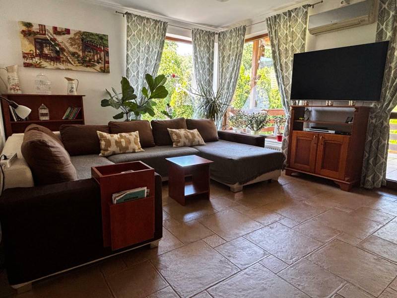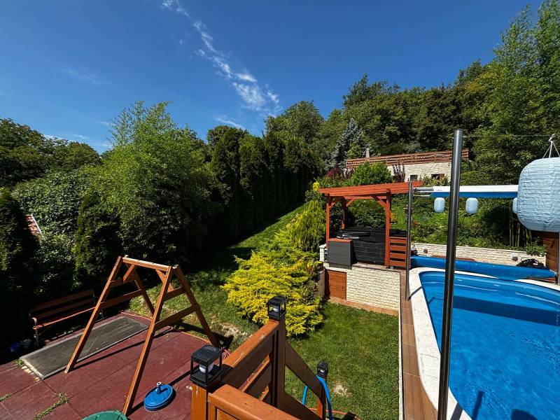 Luxus családi ház a dunakanyarban, akár 2 generációnak is, rövidtávú bérbeadás esetén 7 éves megtérüléssel, hatósági engedéllyekkel, (KTSZ, NTAK, ÁNTSZ, NÉBIH) további fejlesztési lehetőségekkel komoly vállalkozással, pályázatra alkalmas 16 éves céggel, akár 3% 100 milliós hitelfelvételi lehetőséggel, magas foglaltsággal eladó!Itt található a régió legmagasabb felszereltségű wellness terasza és egyediként kínál, nagyméretű engedélyezett gépészettel rendelkező fűthető, nyitott úszómedencét.Pilismaróton minden kényelemmel felszerelt, minőségi anyagokból 2015-ben épült, két szintes, nettó lhasznos 420 m² összbeépített ház, medencével, jakuzzival, szaunával. A két vendég lakás egy szinten található, mely külön bejárattal rendelkezik, de egybe is nyitható.Az alsó szint 200 m², több helyiséggel (volt sütődei tevékenységgel) jelenleg üres állapotban, 2 fürdő, 2 wc, 2 konyha felszereltséggel.A több célú hasznosíthatóságra minden lehetőség adott!Kiválóan alkalmas a vállalkozás továbbfejlesztésére, turisztikai céllal a vendégház bővítésére, szabadidős tevékenység, wellness, vagy újabb lakóegység kialakítására! Teljesen külön bekötött ipari közművekkel műhely és/vagy ipari tevékenység folytatására.Műszaki tartalom:-Teljesen külön bekötött ipari közművekkel műhely és/vagy ipari tevékenység folytatására.-Víz, csatorna, villany: 3x35 A, gáz: ipari 26 m³ és háztartási 6 m³ órával.- 18,5 kW teljesítményű napelem került felszerelésre, mely a teljes villanyfogyasztást fedezi, a szaunával, jakuzzival, medencével együtt is!-A helyiségek klimatizáltak, radiátoros-, és padlófűtéssel (gáz cirkó), szunyoghálóval, riasztóval ellátottak. Az egyik nappaliban hangulatos téglahályha is melegít. Az egész ház kívülről szigetelve, a padlástér szintén szigetelt, hasznos 80 m² beépíthetőséggel.-Távirányítós tolókapu.-Zárt, fedett villany-, gázfogadó és kukatároló.-Az egész ház rögzítős kamera rendszerrel ellátott. Riasztó rendszere őrző-védő céghez bekötve.-Internet ( wifi az egész házban), műholdas televízió.-Térburkolat: 52,5 m² 5-6 gépkocsi részére beálló kialakítva-A házból nyílik a 70 m²-es, fedett terasz, gyönyörű fagerendás tetővel és a 60 m²-es wellness terasz: 18 m³-es fűthető medencével, 6 személyes jakuzzival és a szauna csobbanó medencével.-A terasz alatt 2 helyiséges, polcrendszerrel beépített, klímával felszerelt, vizes blokkal is rendelkező pince-tároló.-A nagyméretű, karbantartott mediterrán kertben kiépített locsolórendszer, gyerekjátszó, valamint 2 helyiségből álló műhely és tároló épült. Ennek füvesített tetején egy tűzrakó hely, a pilisi hegyek látványával.-A telek legmagasabb pontján dunakanyari panorámával 4 m-es épített kilátó áll.