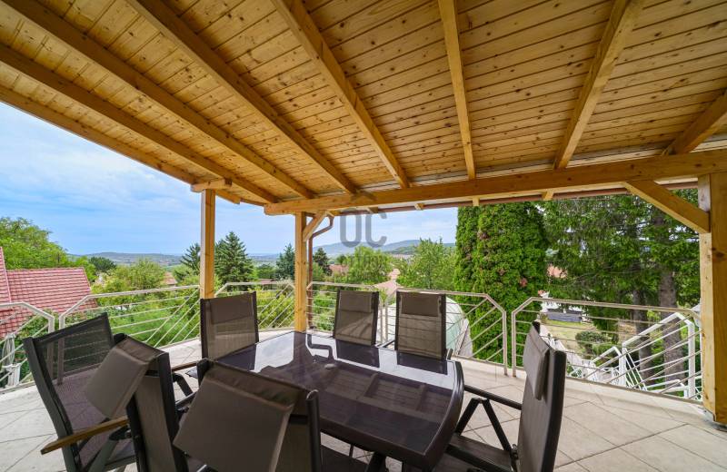 Eladó egy különleges, négy szintes családi ház páratlan környezetben, természetvédelmi terület szomszédságában, 1000 m²-es telken!Ha tágas, kényelmes és fenntartható otthont keresel, ahol a nyugalom, a friss levegő és a panoráma egyszerre adott, akkor ez a ház neked való!Főbb jellemzők:375 m² főépület + 35 m² garázsFedett medence hőszivattyús fűtésselZárt garázs két autóra (EV-töltővel) + fedett kocsibeálló6 nagyobb és 2 kisebb hálószobaTágas amerikai konyhás nappali étkezővelMinden szinten wc/mosdóKlíma minden helyiségbenÓriási fedett terasz lenyűgöző panorámávalTeljes UTP-hálózat szobánként, központi szerverhez bekötveNapelem rendszer (12,8 kWh) + hőszivattyús fűtés → rezsimentes működés (EV-töltés is beleértve)Háromfázisú elektromos hálózat (3×32A)Gáz bekötve, használaton kívül.Környezet és elhelyezkedés:A ház nyugodt, zöldövezeti faluban található, ahol minden fontos intézmény helyben elérhető: bolt, gyógyszertár, orvosi rendelő, iskola, óvoda, buszmegálló és még kávézó is.