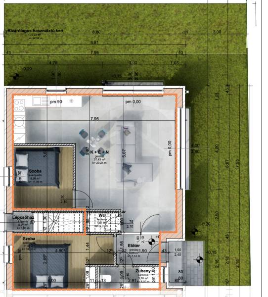 Eladó 4 lakásos, modern társasházban épülő lakások!Kiváló elosztás, amerikai konyhás nappali +2 szoba és saját használatú kert.Az ingatlan kivitelezése során a legmodernebb építőanyagokat és korszerű gépészeti megoldásokat alkalmazzuk a költséghatékony, energiatakarékos üzemeltetés érdekében:-30 cm-es Porotherm téglafalak, 12 cm vastag homlokzati hőszigeteléssel-Időtálló Bramac Teglit Star beton cserépfedés a tetőn-3 rétegű hőszigetelt műanyag nyílászárók-Redőnytok előkészítés minden nyílászárón – igény esetén redőnnyel és szúnyoghálóval is kérhető (egyedi egyeztetés alapján)-Hőszivattyús fűtésrendszer padlófűtéssel-Magas oldalfali fan coil hűtésre és kiegészítő fűtésre-Burkolatok, szaniterek és belső ajtók szabadon választhatókA lakásokhoz garázs vagy gépkocsi beálló vásárolható, melyek árát a vételár nem tartalmazza.Garázs ára: +5.5MFt, gépkocsi beálló + 1.5MFt.