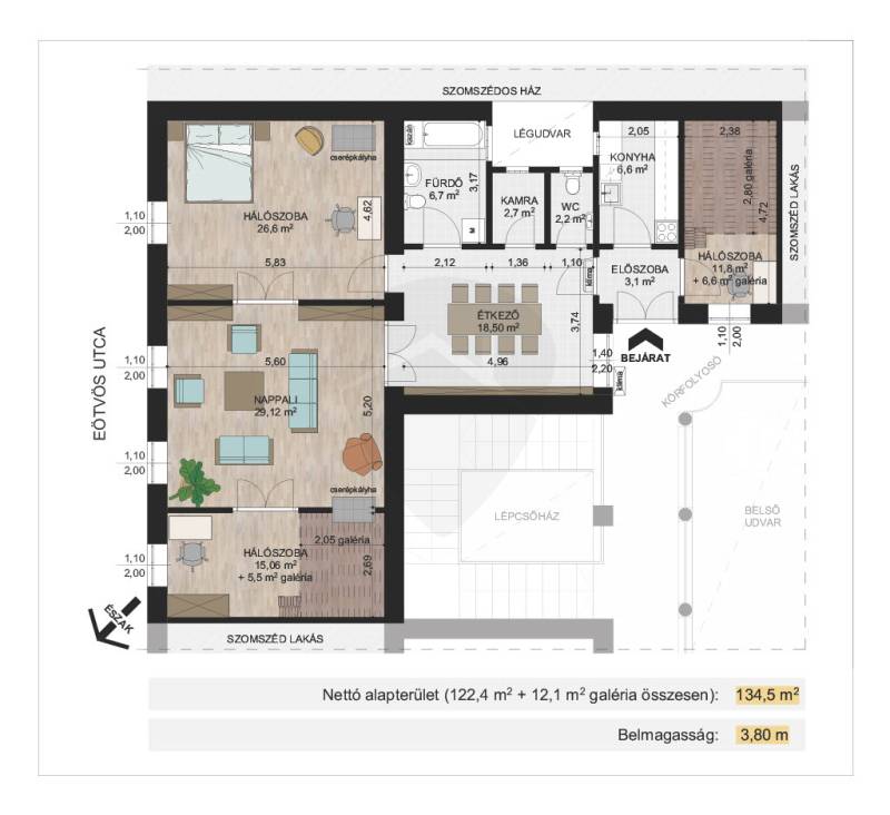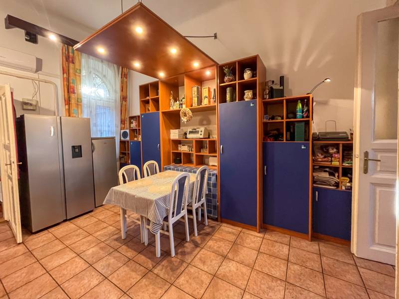 Eladó napfényes, tágas lakás az Oktogon közelében – akár két lakás is kialakítható!Lokáció: Budapest VI. kerület, Oktogon közvetlen közelébenAlapterület: 122,4 m² + 12,1 m² galériaSzobák száma: 3 hálószoba + nappali + étkezőEmelet: 3. (legfelső szint)Lift: nincsÁllapot: jó műszaki állapotúTípus: téglaépítésű társas házi lakásFőbb jellemzők:Napfényes, tágas terek, 3,8 m belmagassággalGalériázott szobák – ideális gyerekeknek vagy extra tárolásraKiváló elosztás, akár két önálló lakóegység is kialakíthatóUdvari gépkocsibeállás (5.000 Ft/hó)Alacsony közös költség: 18.300 Ft/hóCirkófűtés + 2 db gázüzemű cserépkályhaHő- és hangszigetelt 3 rétegű nyílászárókCsendes, rendezett ház – komoly felújítás nem várhatóKiváló közlekedés: metró, villamos, busz, troli pár perc sétára