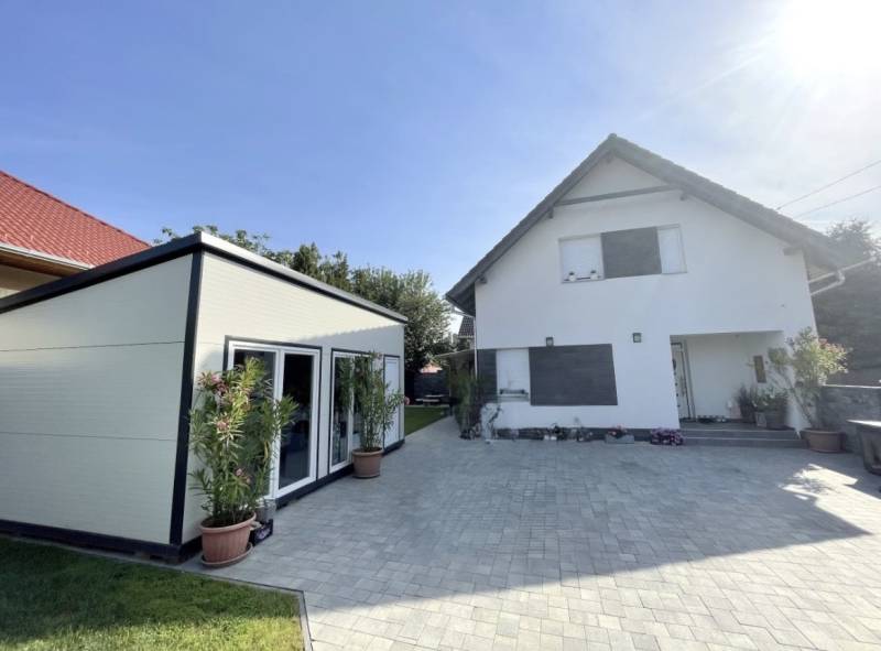 Eladásra kínálunk egy 2021-ben épült, újszerű állapotban lévő, igényes, otthonos családi fészket, Dabas egyik legkedveltebb részén. A városban pár perces sétára könnyen elérhetőek óvodák, iskolák, egészségügyi intézmények és különböző élelmiszerboltok (Tesco, Lidl, Penny, Aldi).Főbb jellemzők:119 m²-es lakótér: 4 hálószoba, amerikai konyhás nappali, beépített és gépesített konyhával, galéria, kamra.Fürdőszobák: 2 fürdőszoba, lent zuhanyzóval, emeleten fürdőkáddal és zuhanyzóval, 3 wcEnergiaosztály: A++.Fűtés: Háromféle (gázkazán, hőcserélős indirekt tároló, 5 hűtő-fűtő klíma).Napelemek: 10 db (4 kW), + 8 kW-os inverterrel, így még bővíthető isKültéri extrák:Két terasz (16,43 m² és 4,4 m²) a pihenéshez.Parkosított kert grillező résszel.15 m²-es mobil műhely tárolóval (az ár tartalmazza).Műszaki adatok:60 cm beton sávalap, 30 cm vastag LEIER teherhordó falak.20 cm hőszigetelés, hőszigetelt, háromrétegű üvegezésű nyílászárók redőnnyel és szúnyoghálóval.