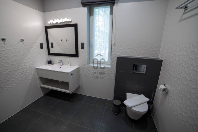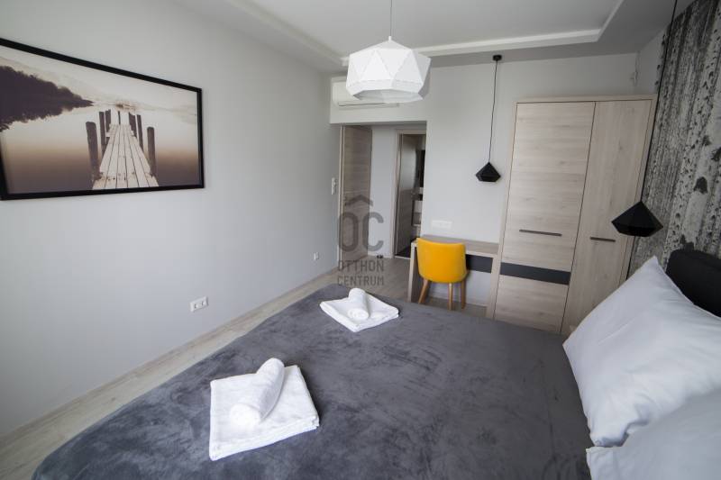 Kiemelt ajánlat az Otthon Centrum Kínálatában!A 348 m2- es nyaraló és a hozzátartozó 100 m2-es terasz magántulajdon a Balatongyöröki strand területén.Jelenleg a felső szinten két apartman erkélyekkel került kialakításra.Egy 100 m2-es és egy 50 m2-es .A 100 m2 -es - ben amerikai konyhás nappali, két hálószoba és két fürdőszoba, valamint Balatoni panorámás erkély van.Az 50 m2-es - ben:Amerikai konyhás nappali egy hálószoba ,egy fürdőszoba és egy Balatoni panorámás erkély van.A földszinten jelenleg egy mindennel felszerelt étterem és pizzéria működik 100 m2-es terasszal és fagylaltozóval.Az ingatlant 20 kw napelem látja el, ehhez csatlakozik két hőszivattyú amikről a fűtés és hűtés klímákkal megoldott.A födém 30 cm- es hőszigeteléssel van ellátva az oldal falakon 10 cm-es szigetelés van.A házba 3x 50 Amper van bekötve.A földszinti étterem is könnyedén nyaralóvá alakítható.A terasz a Balatontól 18 méterre van.Személyesen szívesen megosztom az üzlet jövedelmezőségére vonatkozó adatokat.Kérem hívjon!Ez az ingatlan a \"Felező csomag\" megbízási portfólióhoz tartozik. Részletek az Otthon Centrum weboldalán.