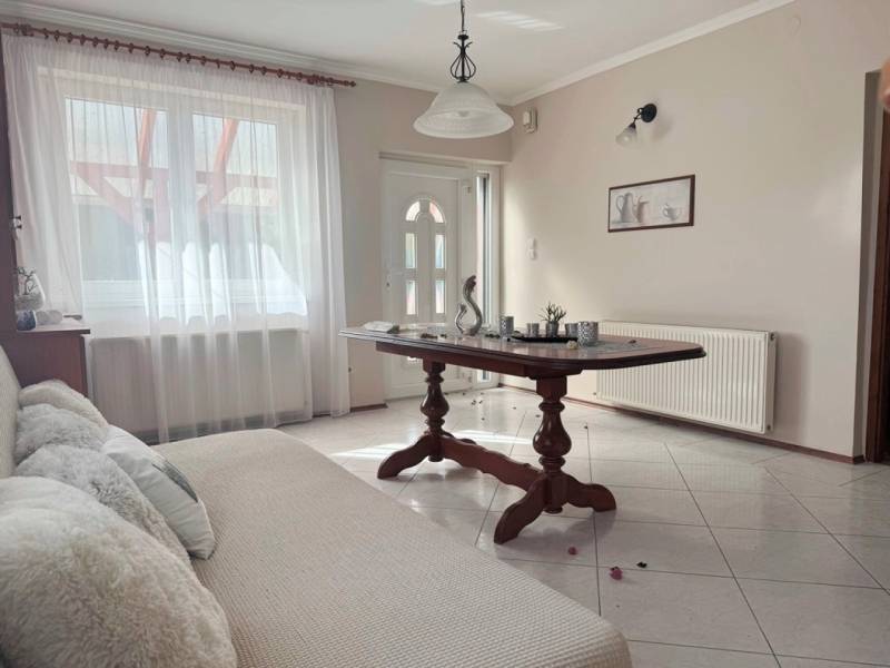 SZIGETÚJFALUBAN, A BUSZMEGÁLLÓ SZOMSZÉDSÁGÁBAN, ÖSSZKOMFORTOS CSALÁDI HÁZ, EMELETI STÚDIÓLAKÁSSAL, TERASSZAL, GARÁZZSAL, PINCÉVEL, ÖSSZKÖZMŰVES, PARKOSÍTOTT TELEKKEL ELADÓ!Szigetújfaluban, szép, konszolidált utcában, kitűnő közlekedési lehetőségek mellett, eladóvá vált, egy összkomfortos nettó 87 m2 lakóterületű családi ház, 32m2 külön bejáratú emeleti stúdiólakással, 25m2 garázzsal, 9m2 pincével, több gépkocsi beállási lehetőséggel, 460 m2 összközműves, gondozott telekkel.Az épület 10cm külső hőszigeteléssel ellátott, téglafalazatú, betonfödémes, cserépfedésű, nyeregtetős családi ház.Külső nyílászárói hőszigetelt műanyag szerkezetű ablakok és bejárati ajtó. Az ablakok alumínium redőnnyel szúnyoghálóval felszereltek. Az emeleti stúdiólakás 3 db elektromos redőnnyel felszerelt.A beltéri ajtók faszerkezetűek.A garázs elektromos redőny zárású.A lakóház fűtése gázkazánról vezérelt központi fűtés, lapradiátoros hőleadókkal, a nappaliban hűtő-fűtő klíma kiegészítéssel. Meleg-víz ellátását egy 120 literes villanybojler szolgáltatja.A külön bejáratú garzon fűtése ugyanerről a központi fűtésről biztosított, hűtése klímával történik.Helyiségek:nappali 21,63m2, szoba 21,84m2, szoba 13,14m2, konyha 3,47m2, fürdőszoba 4,09m2, wc 1,09m2, közlekedő 2,1m2, közlekedő 1,72m2, nyári konyha 16,67m2; fedett terasz 4m2; pince 8,6m2; garázs 25m2;Emeleti stúdiólakás: 32m2; Ez a ház ideális választás lehet azok számára, akik azonnal beköltözhető két generációs otthont keresnek garázzsal.Az utcai kilátás a helyi hangulatot tükrözi, míg a 4 négyzetméteres terasz kellemes pihenőhely lehet a melegebb napokon. A kert, fúrt kúttal, díszfákkal, cserjékkel, zárt kerítéssel, elektromos nagykapuval kiváló lehetőséget nyújt kikapcsolódásra és pihenésre!Az ingatlan közelében, bevásárlási lehetőségek és hivatalok közül szinte minden pár perc távolságban megtalálható.FINANSZÍROZÁS:Nálunk mindent egy helyen intézhet:- hivatalos ingatlanközvetítés;- szakszerű jogi képviselet;- profi hitelügyintézés, 3%-os Otthon Start, CSOK Plusz, falusi CSOK, stb.VÁROM MEGTISZTELŐ HÍVÁSÁT!A részletes adatvédelmi tájékoztató folyamatosan elérhető a www.gdn-ingatlan.hu/adatvedelem oldalon.