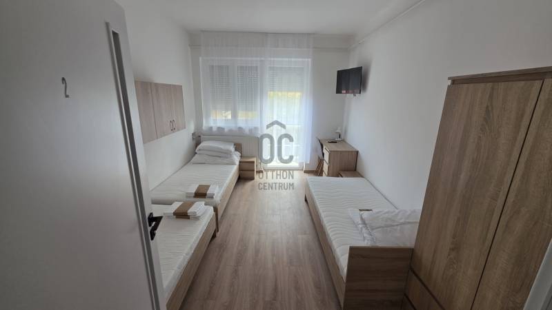 Debrecenben, hosszú távra kiadó egy két épületből álló, teljes körűen felújított családi ház.A két kétszintes épületben 11 , többségében kétágyas szoba található. Szintenként konyha, étkezőés fürdőszoba van kialakítva, tehát 4 konyha, 4 fürdőszoba található az ingatlanban.Így a szintek külön-külön is használhatók, vagyis 4 család önálló lakhatása is biztosítható.Az ingatlan berendezett, gépesített, minden használati tárggyal felszerelt, beköltözhető.A minimális bérlési idő 1 év.Három havi kaució szükséges.