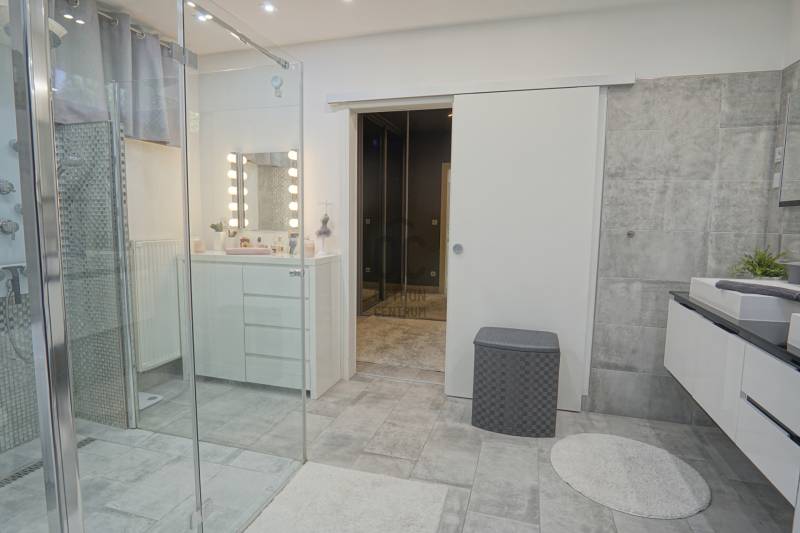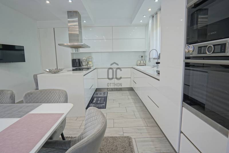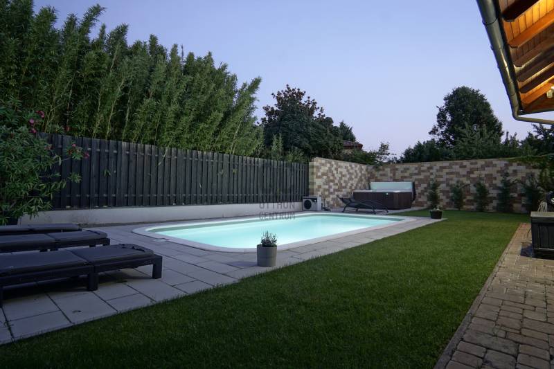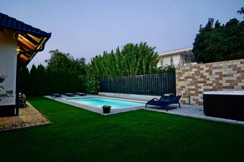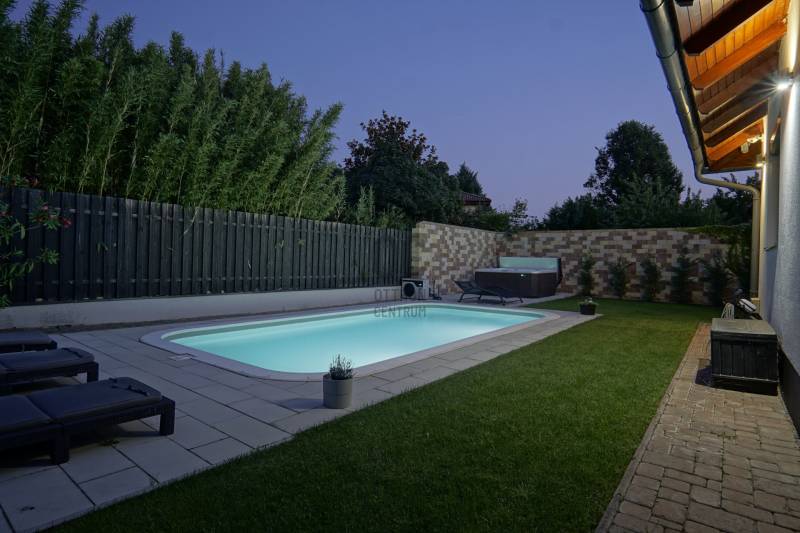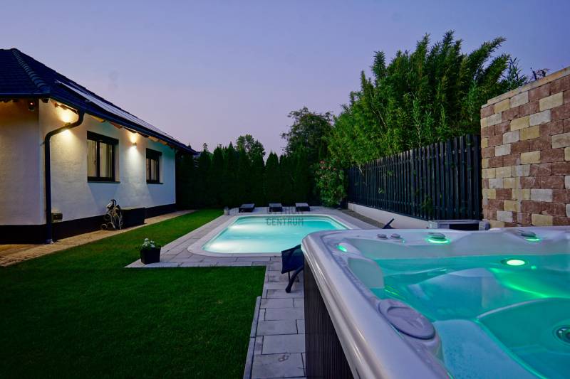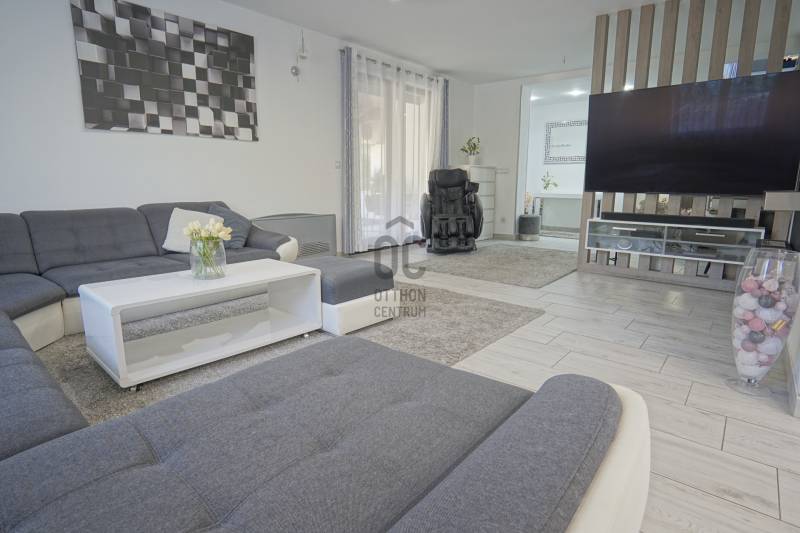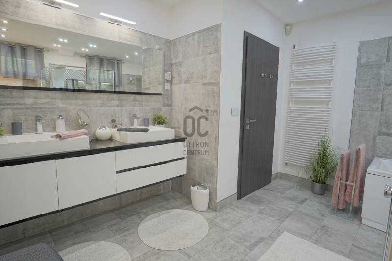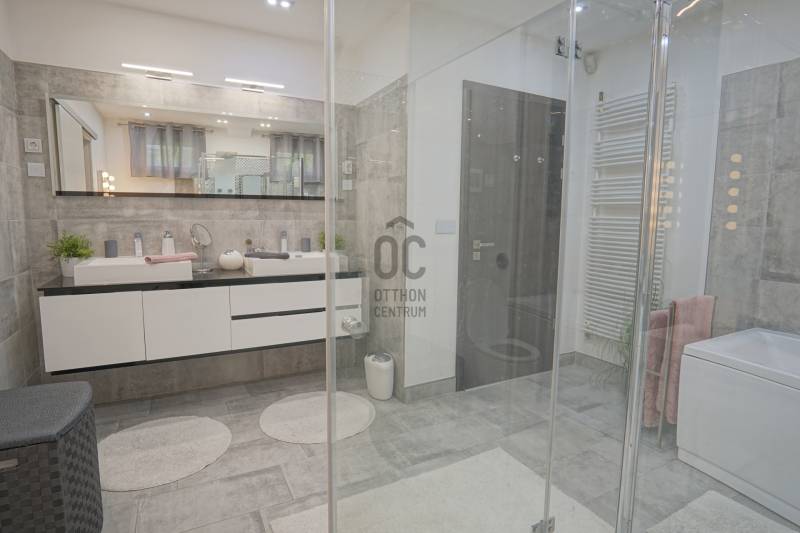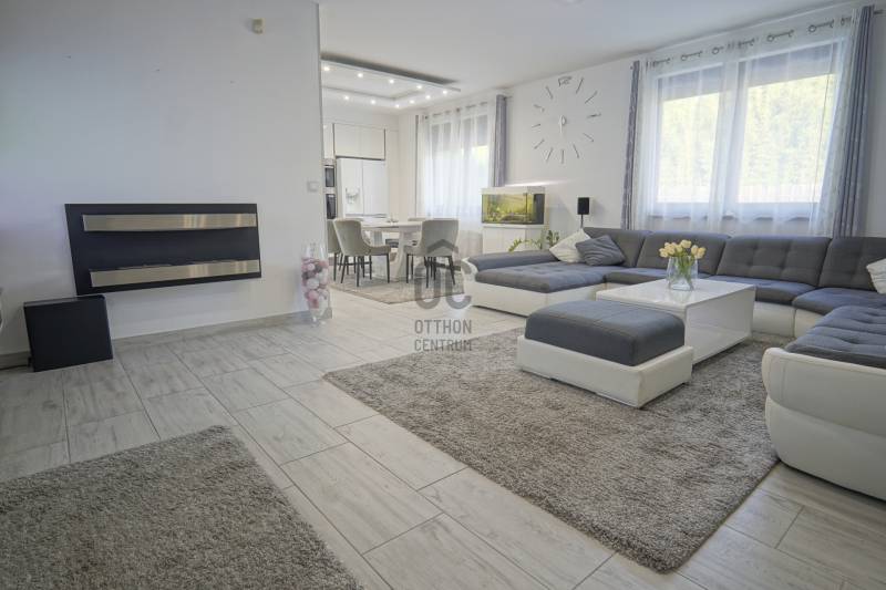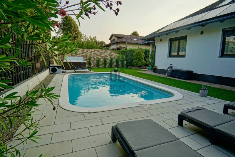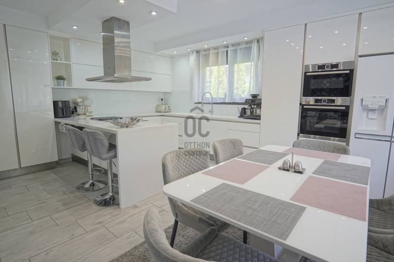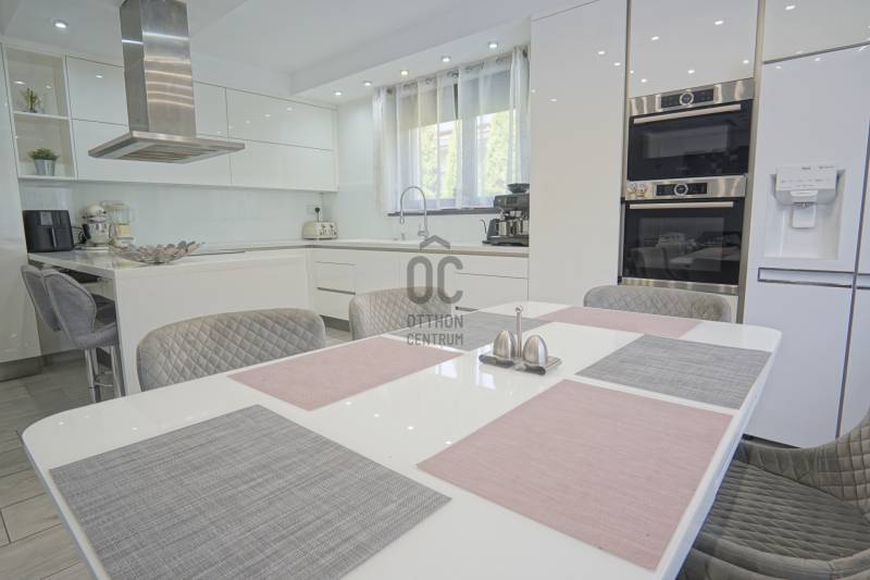 Dunakeszi az északi agglomeráció központja, egy rendkívül gazdag kertváros a Duna szomszédságában Budapesttől mindössze 15 km-es távolságra, így a Főváros zajától távol, ám attól karnyújtásnyira.Számos területi fejlesztés színteréül szolgál, dinamikus fejlődésével kitűnik a környező városok közül. Híres jó nevű iskoláiról, pezsgő Dunaparti életéről, szabadstrandjáról, csárdáiról , modern játszótereiről, kiváló közlekedési feltételeiről, valamint természeti adottságainak átgondolt hasznosításáról. Innovatív városfejlesztési közé tartozik a tavalyi évben átadott DIÁKNEGYED, mely az országban egyedülálló középiskola komplexum!Itt, a város presztízs lakóparkjában, a díszburkolt sétálóutcáknak, rendezett portáknak és nívós, fiatal építésű házaknak otthont adó Tóváros lakóparkban, annak is a legszebb utcájában a Tó-tól pár lépésnyire került eladósorba egy minden igényt kielégítő CSALÁDI OTTHON. Különálló családi ház, egészséges méretű 710m2-es gyönyörűen parkosított telken fekszik, kertjében dísznövények, virágoázisok, MEDENCE (4x8m hőszivattyús!), jakuzzi szolgálja a pihenést teljesen intim környezetben!NEM HIVALKODÓ, a klasszikus formavilág köntösébe bújtatott luxus csak a Családé!A nagy alapterület MINIMÁLIS FENNTARTÁSI KÖLTSÉGET emészt, így kiváló konstrukció!Br.290m2-én átgondolt, ÉLTRE SZABOTT elrendezés valósult meg:Földszinten: DUPLAGARÁZS, mosókonyha, előszoba, tágas amerikai konyhás nappali-étkező, fürdőszoba, hálószoba, lépcsőtér valamint a szülői lakrész kapott helyet. A szülői lakrész diszkréten szeparált hálószoba saját fürdőszobával valamint gardróbszobával.Emeleten: 3 nagy méretű hálószoba, tágas fürdőszoba és közösségi tér-nappali kapott helyet.Az egyébként is fiatal ház teljeskörű felújításon esett át, ekkor egészítették ki a hőszabályozást fain coil-os hűtés-fűtéssel amit a 13kW-os napelemrendszer biztosít! Áramfogyasztás forintban: 0!!!Nagy, világos élhető terek, tökéletesen funkcióra, családra szabott otthon luxus környezetben!Tökéletes választás nagycsaládosoknak, családalapítás előtt állóknak és azoknak akik NEM KÖTNEK KOMPROMISSZUMOT és mind a terület mind pedig az otthon amit keresnek presztízsértékű és maximálisan pihenésre szabott kell legyen!