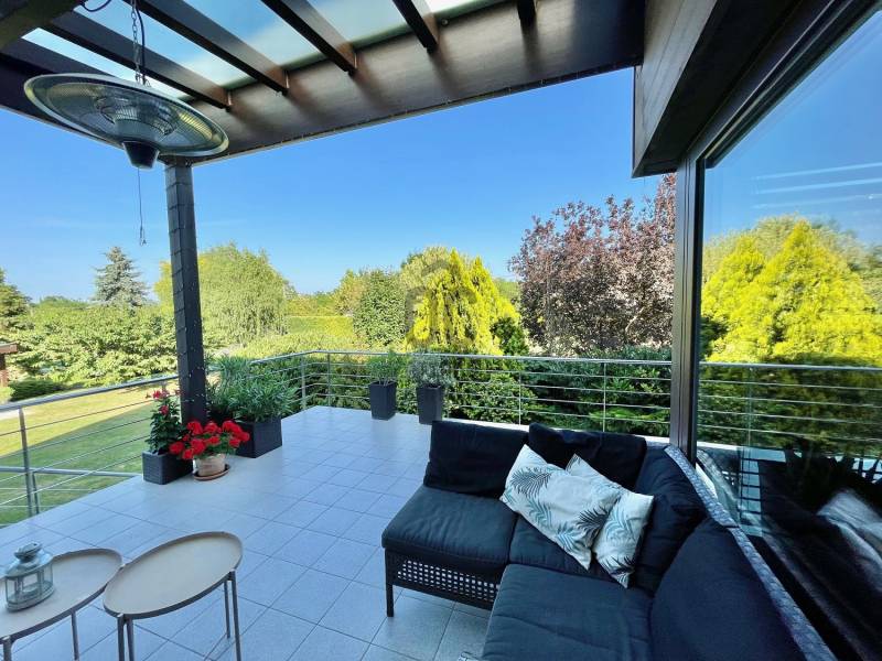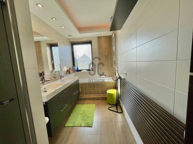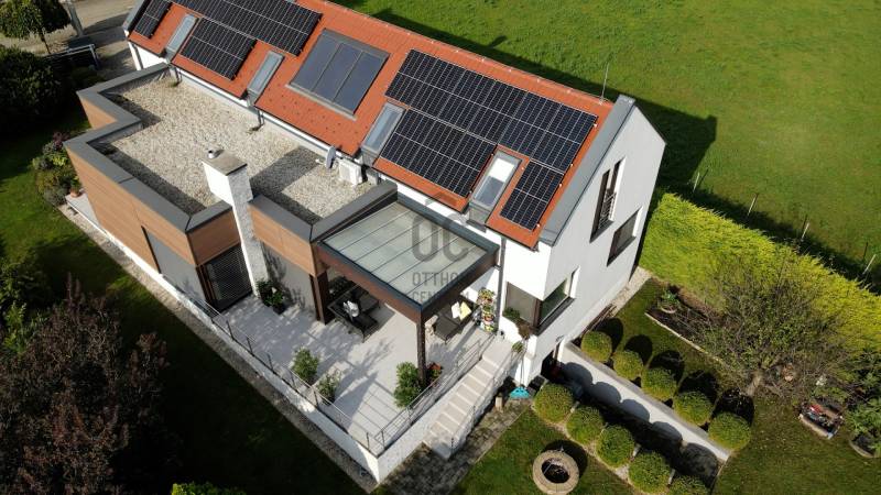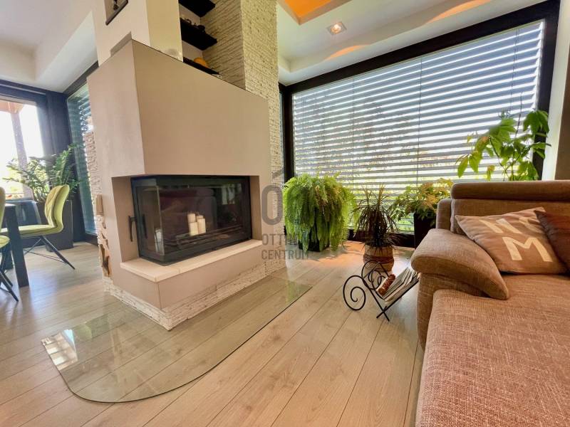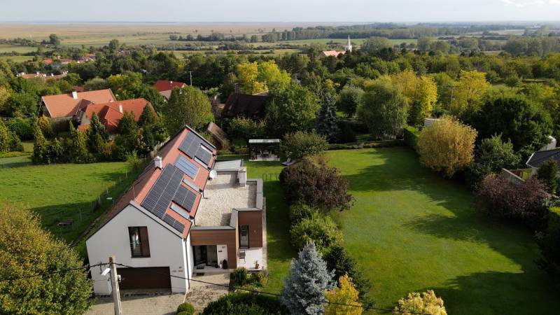 Soprontól 15 percre Hidegségen kínálunk eladásra egy minden igényt kielégítő, nagy terekkel és eleganciával rendelkező családi házat.A közel 1.000 nm-es telekhez lehetőség van a szomszéd telek megvásárlására is, így több, mint 2.200 négyzetméteresre bővíthető a házhoz tartozó terület. Jelen pillanatban egyben kezeli a tulajdonos a kertet, így gyönyörűen karbantartott, pihenésre csábító a környezet, ahol több termő gyümölcsfa is ontja termését.Lokáció: Hidegség község Győr-Moson-Sopron vármegye nyugati részén, Soprontól mintegy 14 km távolságra, keleti irányban található. A település határától északra elterülő Fertő-tó közelsége is kiváló kirándulási lehetőséget nyújt a természet kedvelői számára. Autóval 5-6 perc alatt elérhető az M85-ös autóút!!A Csillahegy rendezési tervének kialakításánál  törekedtek arra, hogy ne váljék belőle egy zsúfolt lakópark.Műszaki jellemzők:A melegről egy gáz-cirkó kazán gondoskodik padlófűtéssel. A villanyszámlát egy-az egyben fedezi a 9 kW teljesítményű napelem rendszer és még 7 évig szaldós elszámolás lesz. A 44 cm-es porotherm tégla  10 cm-es hungarocell szigetelést kapott. - fa 3 rétegű \"RábaAblak\", a nappaliban  távirányítású fém zsaluzínnal- napkollektor- szellőző rendszer- riasztó- mindenhol led-es égők- vízlágyító- fölszinten központi hűtő-fűtő klíma, emeleten egyedi hűtő-fűtő klíma- fatüzelésű kandalló- robotfűnyíró- vízkonnektorok- fúrt kút bő vízhozammal- épített tűzrakó hely- elektromos úszókapu- Velux tetőablakokon külső-belső roló, rovarháló - központi porszívó- szennyesledobó - 20 nm-es kerti pergola - két állásos garázs automata kapuval- vízlágyítóA pinceszinten egy szaunával, jakuzzival rendelkező fitness-wellness részleg található.Kinek ajánlom:Aki szeretne a munka után egy oázisba hazatérve, távol a szomszédoktól pihenni és élvezni a ház nyújtotta kényelmet és kikapcsolódást.A HÁZ 2014-BEN ELNYERTE  A FERTŐPART LEGSZEBB HÁZA  DÍJAT!Hitelre van szüksége?Az Otthon Centrum az ország egyik legnagyobb és legmegbízhatóbb hitelközvetítőjeként, teljes körű és díjmentes hitelügyintézéssel, biztosításkötéssel áll rendelkezésére!Kérje személyre szabott ajánlatunkat Kollégáinktól!