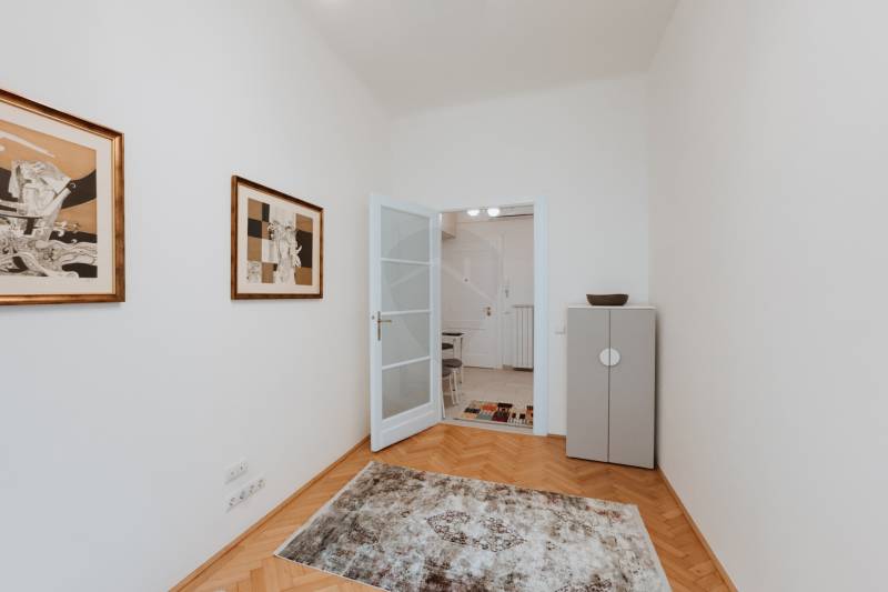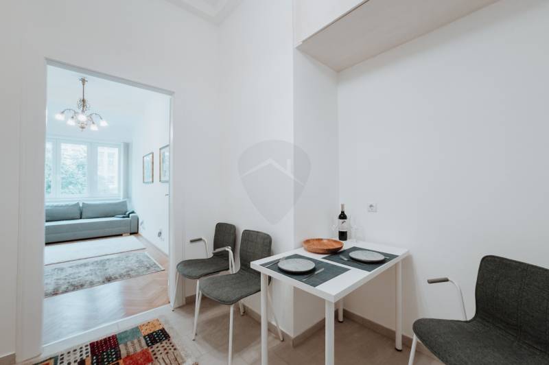 Elegáns, világos otthon Budapest egyik legkedveltebb városrészében, ahol a belvárosi hangulat és a nyugalom tökéletesen találkozik.A lakás 3. emeleti, délkeleti tájolású, utcára néző, így egész nap világos, mégis csendes környezetet kínál.Tökéletes választás otthonnak vagy irodának is.Főbb jellemzők:- Teljes felújításon esett át: új burkolatok, frissen csiszolt és lakkozott tölgyfa parketta, frissen festett ajtók és falak- Beépített konyha főzőlappal és hűtővel- Modern épített zuhanyzós fürdőszoba- Házközponti fűtés, a víz és fűtés díja a közös költségben (27.000 Ft/hó)- Melegvíz bojlerrel, éjszakai áramról- 2 klímaberendezés (mindkét helyiségben külön egység)- Biztonsági bejárati ajtó, zárt, rendezett lépcsőház, liftA társasház homlokzata felújított, rendezett, igényes lakóközösséggelA környék kivételes adottságú: a Duna-part, a Jászai Mari tér és a Parlament pár percen belül elérhető, mégis nyugodt, elegáns környezetben. Kávézók, éttermek, galériák és közlekedési csomópontok egyaránt karnyújtásnyira.Ez a lakás tökéletes választás mindazoknak, akik klasszikus belvárosi otthont keresnek modern, azonnal költözhető állapotban, vagy értékálló befektetést Lipótváros egyik legjobb részén.