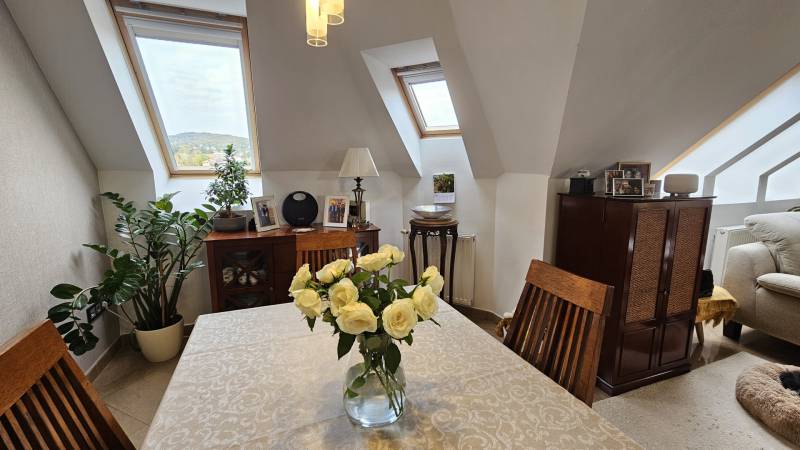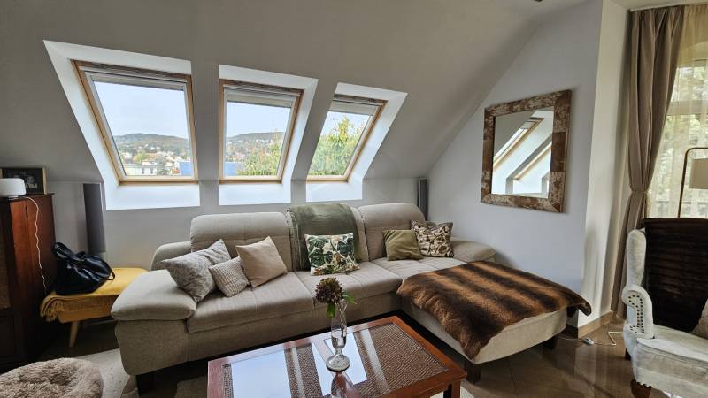 Eladásra kínálom ezt a panorámás lakást egy négylakásos társasházban, Sasad közkedvelt részén.Kiváló megközelíthetőséggel rendelkezik autóval és tömegközlekedéssel egyaránt.Kertész által gondozott közös kert, mélygarázs és zárt felszíni parkoló áll rendelkezésre.A lakás kényelmes terekkel rendelkezik, amelyek kellemes lakhatási élményt biztosítanak. A lakás központi részében található egy amerikai konyhás nappali, kamra, nagy ablakok, valamint egy étkező.A nappali mellett 3 hálószoba található, amelyek mindegyike légkondicionált.A lakás dupla komfortos, két fürdőszobával, mindegyikhez WC illetve bidé tartozik. Az egyik fürdő kádas a másik pedig zuhanyzós. Elegánsan és ízlésesen berendezett, mind műszakilag, mind esztétikailag kifogástalan.A 2. emeleti lakás minden oldalról napfényes és igazán világos.Bár tetőtérnek minősül, számos állóablaknak köszönhetően tágas és kényelmes lakóteret kínál.A műszaki alaprajz szerint bruttó területe 100,62 nm, ami nettó 96,24 nm. A tulajdoni lapon 70 nm szerepel.Barátságos szomszédok, kertész által gondozott parkosított kert, jó közlekedés és minőségi lakás.Érdeklődés esetén keressen, és mutatom!AUER Ingatlan