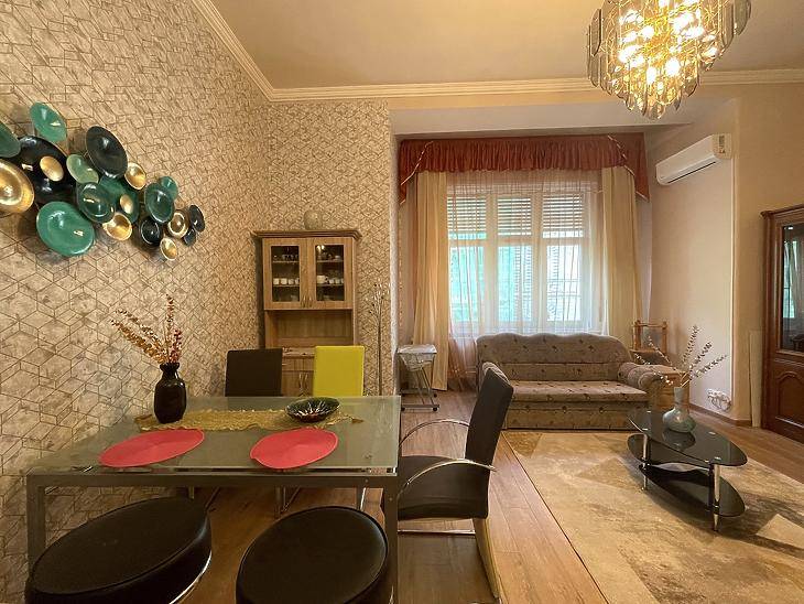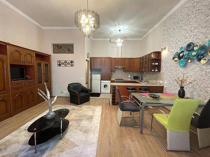 Kiadó igényesen felújított, bútorozott lakás a belváros szívében – Király utca 67. (VII. kerület)Budapest egyik legkedveltebb részén, a VII. kerületben, a Király utcában kínálunk hosszú távra kiadásra egy 76 m²-es, 2,5 szobás, világos és otthonos lakást.A lakás elosztása ideális:nagy méretű hálószoba,tágas amerikai konyhás nappali,egy külön kis dolgozószoba vagy gardrób.valamint egy erkély,ahova szép időben remek kiülni egy kávéra vagy egy pohár borra.A lakás frissen festett, új tapétával, bútorozott, légkondicionált,teljesen gépesített és felszerelt – csak a személyes holmijait kell hoznia!Bérleti díj: 350.000 Ft/hóRezsi: 22.800 Ft/hó + fogyasztás alapjánInternet és TV: 12.000 Ft/hóAzonnal költözhető 2 havi kaució + tárgyhavi bérleti díj + közjegyzői okirat költségének fele ellenében. Kisállat nem hozható, dohányzás nem megengedett!A környékről:A Király utca Budapest egyik legpezsgőbb utcája, tele kávézókkal, éttermekkel, bárokkal, boltokkal – mégis a lakás csendes, így egyszerre élvezheti a belvárosi élet előnyeit és a nyugalmat.A Liszt Ferenc tér, Gozsdu udvar, Andrássy út és a Deák tér pár perces sétával elérhető. A környék kulturális és gasztronómiai kínálata rendkívül gazdag.Kiváló közlekedési kapcsolatok:M1, M2, M3 metróvonalak pár percre (Deák Ferenc tér)4-6-os villamos, buszok, trolik a közelbenÉjszakai járatok elérhetők, így autó nélkül is könnyedén közlekedhet a városban