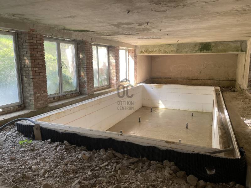 Budapest II. kerületének egyik legkedveltebb, zöldövezeti részén, Adyligetben kínálunk megvételre egy különleges adottságokkal rendelkező, nagyméretű családi házat.???? Telek mérete: 800 m²???? Nettó alapterület: 546 m²???? Jelenlegi kialakítás: 10 szoba, 3 fürdőszoba, hatalmas nappali és konyha???? Garázs: 2 nagy méretű, zárt beálló???? Medence: elkezdett építés???? Közlekedés: buszmegálló az utcában⸻A ház teljes külső homlokzata már megújult, így az ingatlan modern, esztétikus külsőt kapott. A belső tereket teljesen visszabontották, így az új tulajdonos szinte a nulláról, saját elképzelései szerint fejezheti be a belső kialakítást – akár luxus családi rezidenciát, akár többgenerációs otthont is létrehozhat.A jelenlegi belső struktúra tágas és rugalmasan alakítható, a 10 szoba igény szerint újragondolható, a nappali mérete pedig egyedülálló térérzetet biztosít.A két garázsban kényelmesen elférnek a családi autók, a kertben pedig már elkezdték egy privát medence építését – az új tulajdonos befejezheti ezt, és egy valódi oázist varázsolhat a kertből.⸻Miért különleges ez az ingatlan?•Exkluzív lokáció a természet közelében, mégis kiváló közlekedéssel•Ritkán elérhető méret és kialakítási lehetőségek•Készen áll arra, hogy valaki a saját ízlése szerint formálja tökéletessé•Kiváló ár-érték arány ebben a kategóriában⸻Ha Ön egy tágas, jól megközelíthető, egyedi lehetőségeket rejtő ingatlant keres Budapest zöldövezetében, ne hagyja ki ezt a lehetőséget!???? További információért, alaprajzért, vagy megtekintés egyeztetéséhez kérem, keressen bizalommal!