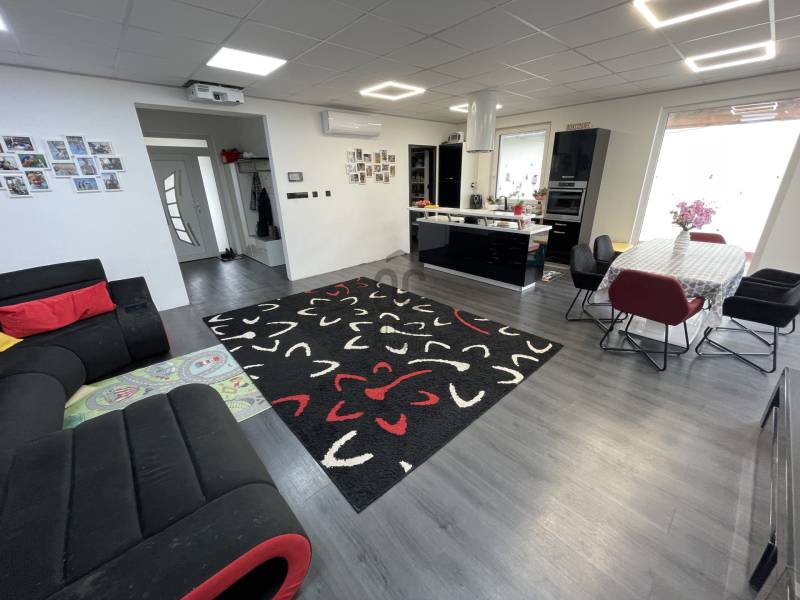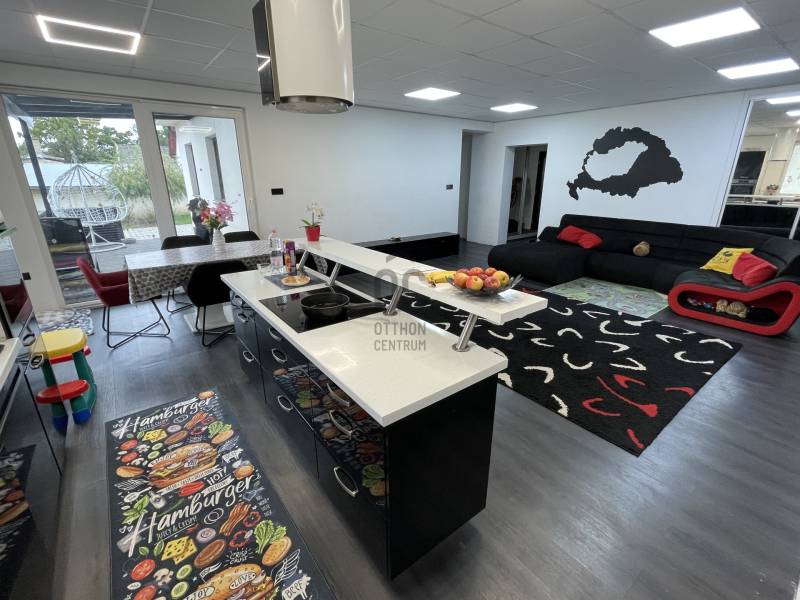 Képzeld el, hogy egy olyan otthonra találsz, ami nemcsak a családod igényeit szolgálja ki, hanem a mindennapjaidat is szebbé és kényelmesebbé teszi. Hajdúböszörmény szívében, a Belvárosban vár rád ez a világos, 2019-ben minőségi anyagokkal megépített modern családi ház, amely tökéletes választás családosok számára. Az ingatlan 143 négyzetméteren terül el, és egy 559 négyzetméteres telken fekszik, így bőséges helyet biztosít a gyermekeknek és a felnőtteknek egyaránt. A házban étkező-konyha-nappali egy légtérben+ 5 szoba található, amelyek ideálisak lehetnek hálószobának, dolgozószobának vagy akár vendégszobának is. A két fürdőszoba garantálja, hogy sosem kell várakoznod a reggeli rohanás közben. A 20 négyzetméteres terasz a családi összejövetelek, baráti grillezések vagy csak a pihenés tökéletes helyszíne lehet. A dupla garázsban és a részben térkövezett udvaron több autó számára elegendő hely biztosított. Az ingatlan hőszigetelt alumínium redőnyökkel, egyedi fa beltéri ajtókkal rendelkezik, a kellemes hőmérsékletet az év minden szakaszában Ariston kondenzációs gázkazán padlófűtéssel és Gree hűtő-fűtő klíma biztosítja. A kedvező paramétereknek és az 5 kW-os napelem rendszernek köszönhetően alacsony fenntartási költséggel bír.A környék központi elhelyezkedése lehetővé teszi a könnyű közlekedést. Emellett a környék biztonságos és csendes, ideális választás családok számára, akik értékelik a nyugalmat és a városi élet előnyeit. További kérdéssel, megtekintéssel várjuk szíves megkeresését!Irodánkban teljeskörű hitelügyintézéssel állunk ügyfeleink rendelkezésére.Ez az ingatlan a \"Felező csomag” megbízási portfólióhoz tartozik. Részletek az Otthon Centrum weboldalán.Ez az ingatlan a \"Felező csomag\" megbízási portfólióhoz tartozik. Részletek az Otthon Centrum weboldalán.