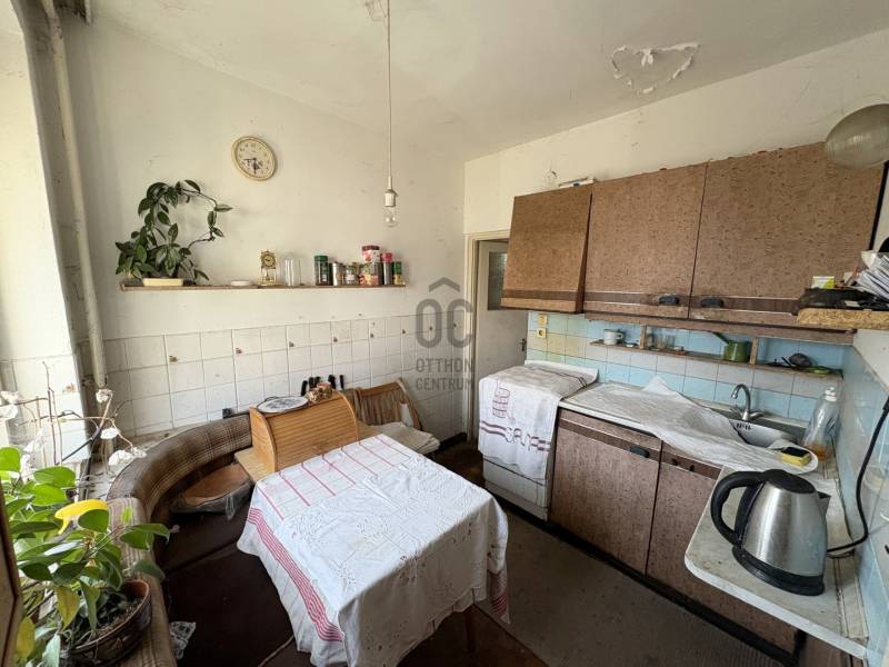 Képzeld el, hogy egy igazi otthonra bukkantál Budapest 19. kerületének Kertváros városrészében.Ez az ikerház a Kelet utcában várja új tulajdonosát, alapterülete nettó 75 nm, a hozzá tartozó telek mérete pedig 215 nm, így van helyed a kreatív ötleteid megvalósítására. A három szobás elrendezés lehetőséget ad arra, hogy a család minden tagja megtalálja a maga helyét, legyen szó akár dolgozószobáról, gyerekszobáról vagy vendégszobáról. A fürdőszoba egyedi lehetőségeket rejt, hiszen a felújítandó állapot miatt a saját ízlésed szerint alakíthatod ki. A terasz ideális helyszín a reggeli kávézásokhoz vagy a baráti összejövetelekhez, ahol a friss levegő és kertre néző kilátás garantálja a kellemes pillanatokat. Fűtése gázkazánnal megoldot, lapostetős épület ami sok lehetőséget hordoz magába.A garázsban egy normál méretű autóval lehet parkolni és közvetlenül mellette van egy két kelyiséges tégla épület ami jól hasznosítható.Kertváros nemcsak a csendes utcáiról és barátságos szomszédságáról ismert, hanem a kiváló közlekedési lehetőségeiről is. A város tömegközlekedése remek, így könnyedén eljuthatsz a belvárosba vagy akár a környező kerületekbe is.Az autóval közlekedők számára a közeli főutak gyors elérhetősége jelentős előny, hiszen a város bármely pontjára könnyedén eljuthatsz. Ez az ingatlan nem csupán egy ház, hanem egy lehetőség arra, hogy a saját ízlésed szerint formáld meg az otthonod.Az ingatlant jelenleg hitellel nem lehet megvásárolni, mivel nincs megosztási szerződés a szomszéd ikerféllel.Amennyiben kérdéseid vannak, vagy szeretnéd megtekinteni, ne habozz, keress bizalommal!Ez az ingatlan a \"Felező csomag\" megbízási portfólióhoz tartozik. Részletek az Otthon Centrum weboldalán.