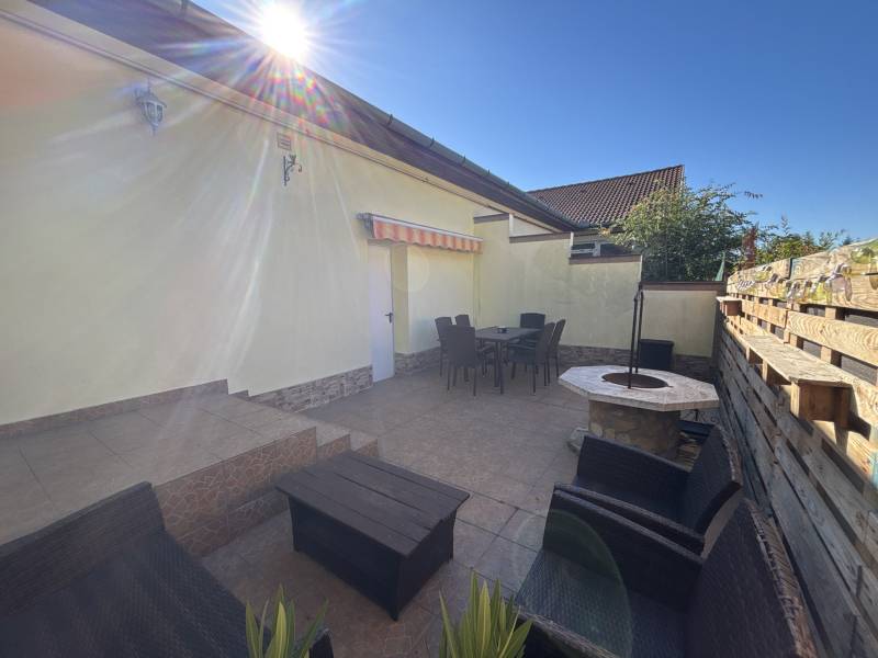 Hajdúsámson, Sámsonkert csendes, rendezett részén eladó egy nettó 81 m²-es, modern kialakítású ikerház első fele, 350 m²-es parkosított telekkel és garázzsal.Főbb jellemzők:- 2007- ben épült- Tégla falazat- 3 külön nyíló szoba (10–10–12 m²)- Tágas nappali (25 m²)- Konyha + kamra, étkező- Fürdőszoba és külön WC- Garázs (15 m²) elektromos garázskapuval- 18 m² terasz- Klíma- Gázkazános fűtés + hangulatos fatüzelésű kandallóKülső jellemzők:- 350 m²-es gondozott udvar- Gyermekjátszótér- Bográcsozó- Fúrt kút a locsoláshoz- Elektromos kapu- Riasztó rendszerA ház műanyag nyílászárókkal felszerelt, vezetékes vízzel, gázfűtéssel, valamint modern kényelmi megoldásokkal rendelkezik.Ideális választás családoknak vagy azoknak, akik nyugodt, mégis jól megközelíthető környezetben keresnek otthont!Január 1-től az Otthon Start hitelre is alkalmas.✅ Teljes körű ügyintézéssel: Hitelügyintézés és ügyvédi háttér biztosított – minden lépésben segítjük Önt a vásárlás során!Érdeklődni és megtekintés egyeztetéséhez hívjon bizalommal!
