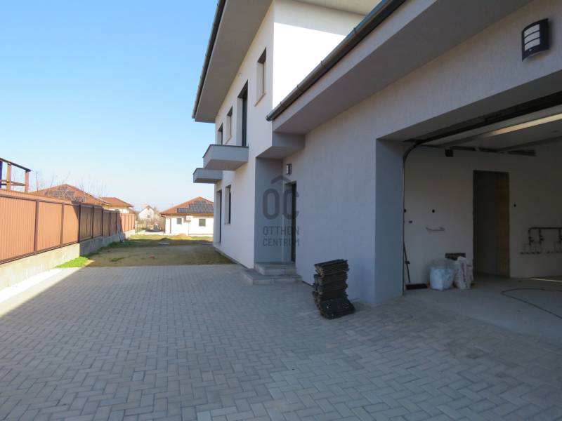Érd kedvelt részén Fenyves -Parkvárosban eladó egy 174 nm-es Nappali + 4 szobás ,dupla komfortos dupla garázsos kétszintes ikerházfél .A telek utcafronti részén, kisebb kerttel rendelkező másik épület referencia száma:U0047612 ,Ára: 185.000.000 Ft.Méretében és elrendezésében teljesen azonos a két ikerház fél, egyben is megvásárolható.Kiváló lehetőség összeköltözéshez vagy cégközpont kialakításhoz.1304 nm-es telken található a két egymástól független, kivitelezésben, tervezésben és műszaki tartalomban prémium minőséget képviselő ingatlan, amely közel nulla energia igényű. Az épületek kizárólag a duplagarázsoknál érintkeznek egymással, egyéb közös falrész nincsen.A házhoz tartozó önálló kertrész:539,2nmAz építkezés kb. 90%-os készültségi fokon áll, a folytatás a vevői igények alapján történik.A burkolatok és szaniterek kiválasztása, a leendő tulajdonos igényeihez fog igazodni.Várható költözés az adásvételi szerződés megkötésétől 6 hónap.Elrendezés :Földszint (80 m²)- 40 m²-es amerikai konyhás nappali étkezővel és kandallókiállással- 12 m²-es fedett terasz, amely közvetlen kapcsolatot teremt a kerttel- Különálló szoba, amely bármilyen célra alkalmas- Kamra, háztartási helyiség/mosókonyha, tároló, WC és fürdőszoba- Tágas előtér és közlekedő- 37 m²-es dupla garázs, elektromos kapuval és külön vízkiállássalEmelet (57 m²)- 3 hálószoba, mindegyikhez saját terasz (köztük egy 24 m²-es nagyobb terasz)- A szülői hálószobához gardróbszoba kapcsolódik- Fürdőszoba WC-velKert:- Minden olalon zárt,minőségi kerítés- Térkövezett bejáró (gépkocsi és gyalogos)- Elektromos kapu, kaputelefon- Tereprendezés, termőtalajterítés (kertészeti munkákat nem beleértve)Műszaki paraméterek: •Alapozás: vasalt beton sávalap (c/16/24 betonból, lábazat: Leier zsalukő, vasalvamixerbetonnal betonozva, betonminőség c/16/16, vasalt szerelőbeton 12 cmvastagságban c/16/16 betonminőség).•Falazat: 30-as Leier tégla felmenő falazat (nútféderes falazóelemekkel, Baumit falazóhabarcsba falazva).•Kandalló: a földszinten helyet kap egy Leier 20-as kandalló kémény.•Födém: a földszinten monolit vasbeton födém és lépcső; az emeleten láng- és rovarmentesített fagerendás födém gipszkarton borítással (szeglemezes tetőszerkezet), 30 cm hőszigeteléssel.•Nyílászárók: antracit színű 3 rétegű hő és hangszigetelt üvegezéssel ellátott fa nyílászárók, rejtett redőnytokkal, részben elektromos redőnnyel, részben manuális redőnnyel.•Hőszigetelés: a földszinti aljzaton 12 cm, külső falakon 15 cm normálpolisztirol, födémen 30 cm üveggyapot paplan.•Hűtés, fűtés, melegvíz: Elektromos üzemű hőszivattyús rendszer (hőszivattyús padlófűtés, hőszivattyús mennyezeti hűtés-fűtés). A melegvizet egy 200 literes HMV tartály biztosítja, elektromos hőpatron rásegítéssel. H-tarifa (3x20A) biztosítása a hőszivattyú részére. Nappali tarifa (3 fázis, 3x16A) biztosítása a lakás és kiegészítő fűtőpatron részére. •Központi porszívó előkészítése (porszívómotor és gégecső nélkül).Az ár tartalmazza a(z):•elektromos kapukat, •kerítést, •kaputelefont, •antracit színű, Hörmann márkájú, motoros elektromos garázskaput (távirányítóval),•térkövezett bejárót (gépkocsi és gyalogos), •központi porszívó előkészítését,•beépített bejárati ajtót, •beltéri ajtókat kilinccsel bruttó 90.000 Ft/db-ig,•szanitereket, csaptelepeket együttesen 1.200.000 Ft/lakás összegig,•beltéri hideg burkolatokat: bruttó 9.000 Ft/nm-ig,•beltéri meleg burkolatokat: bruttó 7.000 Ft/nm-ig,•villamossági szerelvényeket alap, fehér színben (Legrand),•beltéri glettelést és festést: kétszer glettelve, két rétegben festve, fehér színben,•csatorna és bádogos munkálatokat (antracit színben, alumínium anyagokkal) a tervekkel megegyezően.A lakások fajlagos hőveszteségtényezője a közel nulla energiaigényű épületek követelményszintjének felel meg.A vételár kulcsrakész állapotra vonatkozik és az 5%-os áfát tartalmazza.Várható befejezés: Az adásvétel megkötése után 6 hónappalAz Otthon Centrum teljes körű ügyintézéssel (CSOK Plusz, hitel, babaváró) áll az eladók és a vevők rendelkezésére .Az adásvételi szerződés megkötéséhez igény szerint megbízható ügyvédi közreműködést biztosítunk, és segítséget nyújtunk az adásvételhez kapcsolódó ügyek intézéséhez.A kivitelező megbízható cég, több évtizedes működése révén számos referenciával rendelkezik Érden és Pest megyében, amelyek igény szerint megtekinthetők.CSOK igénybevehető, mivel céges építkezés.