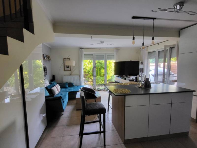 Fedezze fel ezt a lenyűgöző, modern ikerházfelet, amely Budaörs központi, mégis csendes részén várja új tulajdonosát. A lokáció tökéletes: pár perc az autópálya, a bevásárlóközpontok és Budapest határa, így minden elérhető, miközben otthona a kertvárosi nyugalom szigetét kínálja.A teljes konyha/nappali pár éve lett felújítva a modern bútorok és a korszerű gépek beépítésével.A 5 szobás, teraszos és erkélyes otthon minden részletében a kortárs design és a minőség találkozása. A gondosan megtervezett belső terek, a beépített szekrények által maximalizált helykihasználás és a letisztult, egyedi stílus azonnal magával ragad.Az épületet prémium anyagok felhasználásával alkották meg, ahol minden felület és részlet a minőség iránti elkötelezettséget tükrözi. A napfényes terek és a tetőtér beépítésének lehetősége további rugalmasságot adnak a jövőre nézve.A napelemeknek és az A++ energetikai besorolásnak köszönhetően az otthon környezettudatos és rendkívül alacsony fenntartású, így az elegancia mellé tudatosság is társul.Ez az ingatlan nem csupán egy ház — élettér, amely inspirál, megnyugtat és kiemel a hétköznapokból.Azonnal költözhető, kompromisszummentes választás azoknak, akik a tökéletest keresik.
