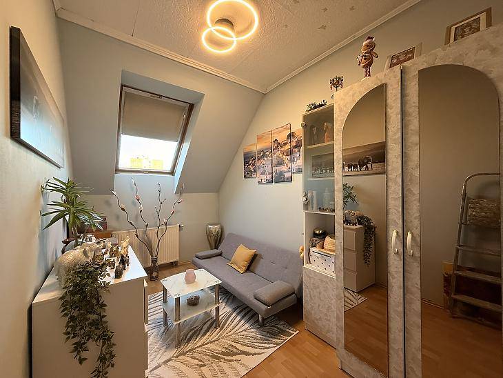 Újpesten az Árpád üzletház közelében, kiváló közlekedés mellett, szigetelt társasházban, eladásra kínálunk egy jó állapotú, nettó 88 nm-es, 1+3 félszobás, tetőtéri téglalakást. Az ingatlan 1/1-es tulajdonban van, per-teher és igénymentes. Átadási ideje: 90-120 nap. Közös költsége: 26.790.- Ft/hó (beállóhellyel együtt).A lakásban a 2009-es éveknek megfelelő korszerűségű víz és villanyhálózat került kialakításra. Több ponton záródó, biztonsági bejárati ajtó, fa típusú beltéri ajtók, valamint redőnnyel felszerelt műanyag keretes, thermo üveges és sötétítővel felszerelt, fa típusú velux tetőtéri nyílászárók kerültek beépítésre. A szobákban laminált padlót helyeztek le, a többi helyiséget járólappal burkolták. Minden helyiségben lapradiátor található. A fűtést és a melegvíz ellátást kombi cirkókazán biztosítja, a fogyasztás elszámolás alapján is történhet. A nagyobb komfortérzet kialakítása érdekében a nappaliba egy hűtő-fűtő inverteres légkondicionáló berendezés is felszerelésre került. Az ingatlanhoz egy saját, kb 3 nm-es, zárt tároló tartozik. Igény esetén a teremgarázsban külön helyrajzi számmal rendelkező, privát, zárható, kb. 18 nm-es beállóhely vásárolható az ingatlanhoz, melynek irányára 10.000.000.- Ft.Pár perc sétával Lidl, Dm, Jysk, Pepco, Rossmann, Spar, Obi, Posta, gyógyszertár, éttermek, illetve egyéb szolgáltatók és szolgáltatások mind megtalálhatók. A közelben megtalálható a 120-as, 196-os, 104-es, 204-es, 25-ös, 170-es busz megállója. Újpest-központ és az M3-as metróállomás gyalogosan kb. 6 perc alatt megközelíthető. A belváros tömegközlekedéssel és autóval egyaránt rövid időn belül elérhető. A hirdetésben szereplő adatok tájékoztató jellegűek! Egyes ingatlanjaink esetében csere és ingatlanbeszámítás is lehetséges. Továbbá ügyfeleink részére keresünk eladó ingatlant, tulajdonrészt, vagy haszonélvezeti joggal terhelt ingatlant Budapesten és az agglomerációban. A részletekről kérjük érdeklődjön telefonon.Bankfüggetlen hiteltanácsadóink, az ország összes pénzintézete közül gyorsan és gördülékenyen találja meg az Önnek legmegfelelőbb konstrukciót, egyedi, személyre szabott kedvezményekkel.A KÖZVETÍTÉS VEVŐINK RÉSZÉRE DÍJMENTES!