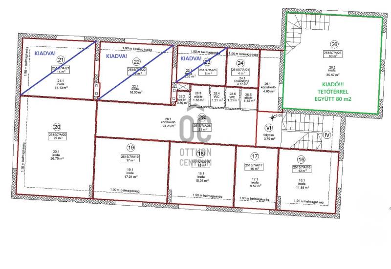Szekszárd szívében, a Tinódi utcában, frekventált helyen kiadók újszerű állapotú, klimatizált irodák egy korszerű, tégla építésű irodaház második emeletén.Az ingatlan kiváló választás vállalkozások, könyvelők, tanácsadók vagy szolgáltatók számára, akik igényes, belvárosi környezetben keresnek munkahelyet.Főbb jellemzők:- Belvárosi elhelyezkedés, könnyű megközelíthetőség- Korszerű épület, tégla falazat, redőnnyel védett műanyag nyílászárók- Saját gázkazános fűtés, klimatizált (hűtő-fűtő) helyiségek- Modern burkolatok: irodákban laminált parketta, közösségi terekben járólap- Fehérre festett falak, újszerű, tiszta állapot- Közös használatú teakonyha és mosdók a folyosón- Irodák egyenként vagy több helyiség összekapcsolásával is bérelhetők (12, 27, 42, 80 m2)- A hirdetésben található iroda 80 m2 alapterületű, a szintrajzon a 26. számú.- Hosszú távú bérleti lehetőségTovábbi információk:- Parkolás a ház előtt, fizetős övezetben- Zárt lépcsőház, kaputelefonos beléptető rendszer- A meghirdetett bérleti díj bruttó összeg (ÁFA-s négyzetméter ár) és nem tartalmazza a rezsit és a közös költséget- Az irodákat bútorozottan, vagy anélkül is bérelhetiIdeális választás mindazoknak, akik egy rendezett, reprezentatív irodai környezetet keresnek Szekszárd belvárosában!