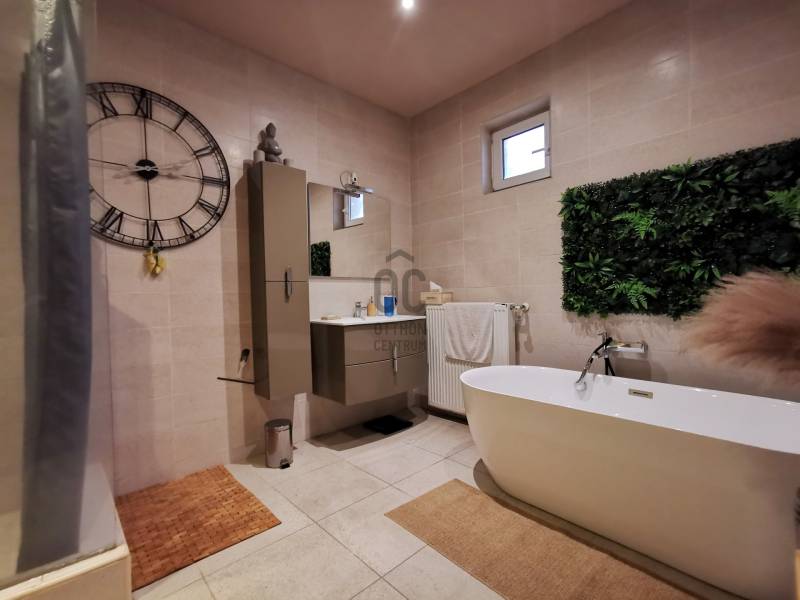 Amennyiben egy kényelmes, jól megközelíthető és sokoldalúan használható otthont keres, ez a lehetőség Önnek szól!Sárszentmihály szívében, a buszmegálló közelében, 1094 m²-es, gondozott, összközműves telken található ez a 2004-ben épült, kétszintes, 216,6 m² hasznos alapterületű családi ház.A földszinten tágas, egybenyitott nappali–étkező–konyha fogadja, mellette két hálószoba, külön fürdőszoba és WC. A fedett előtérből nyíló, jelenleg irodaként használt helyiség könnyedén átalakítható garázzsá vagy további szobává, de vállalkozási célokra is ideális.Az emeleten további tágas nappali (jelenleg klubszoba és konditerem), egy hálószoba, fürdőszoba és szauna kapott helyet, így a ház tökéletes a teljes kikapcsolódáshoz, akár két generáció számára is.A hangulatos udvar valódi élménytér: hőszivattyús fűtésű medence keringetőrendszerrel, sütögetőhely, két pagoda, valamint bőséges tér a családi és baráti összejövetelekhez.Minőségi műszaki tartalom: • beton sávalap, B30-as tégla falazat, tégla válaszfalak • 30 cm grafitos homlokzati szigetelés • Hőszigetelt betonfödém • Bramac antikolt betoncserép, 8 cm Baumit hőszigetelés • Hőszigetelt üvegezésű műanyag nyílászárók • Vaillant kondenzációs + Bosch elektromos cirkó kazán padló- és radiátoros hőleadással, 190 l HMV • Klímaberendezés • 20 kW napelempark, ami elektromos autó töltésre is alkalmas • Elektromos működtetésű kovácsoltvas kapuk, több autó számára parkoló • Kiépített riasztórendszerKörnyék:Csendes, családi házas övezet, a központhoz és a főúthoz közel – minden fontos szolgáltatás kényelmesen elérhető.Közlekedés:A Székesfehérvárról induló sűrű menetrendű buszjáratoknak köszönhetően autó nélkül is könnyen megközelíthető.A ház élőben még lenyűgözőbb, mint a fotókon – látogasson el, és győződjön meg róla személyesen!#Sárszentmihály #CsaládiHázEladó #MedencésOtthon #LuxusIngatlan #KényelmesÉlet