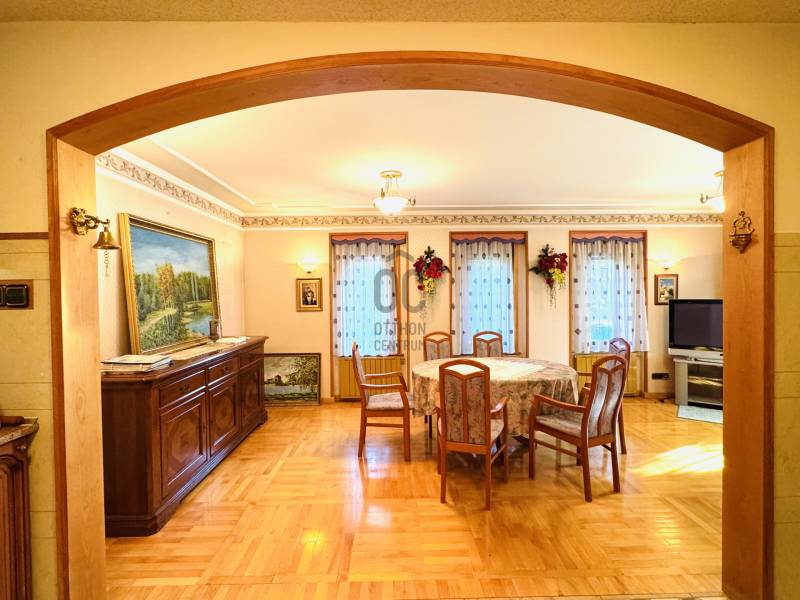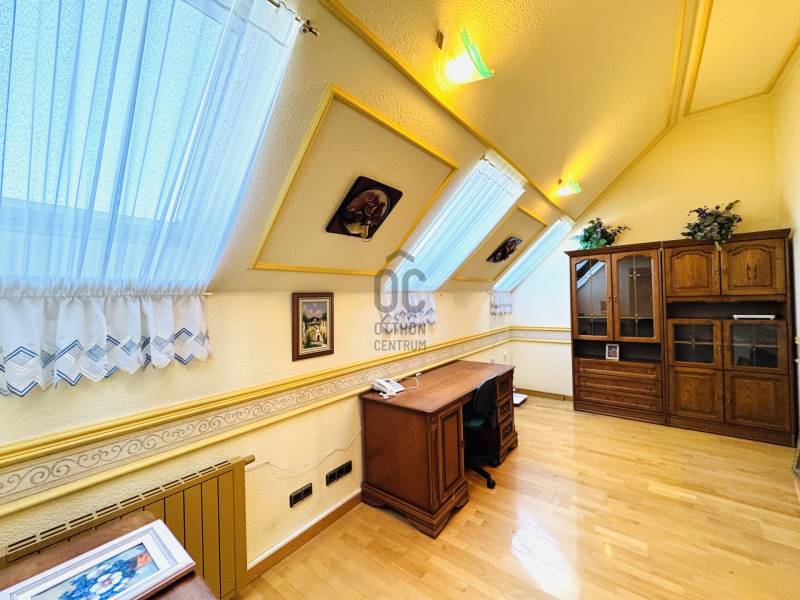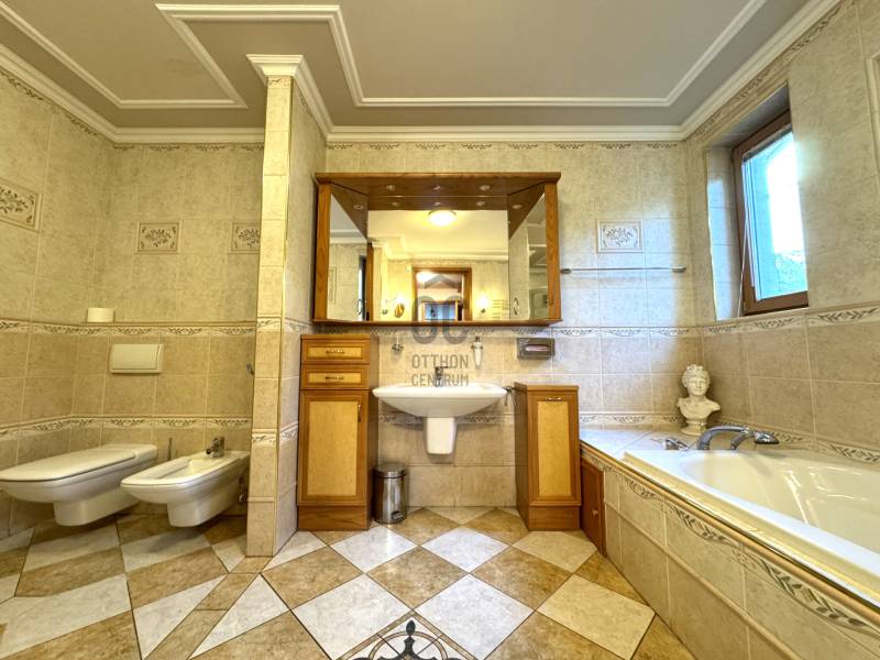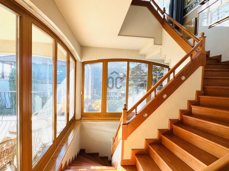 Fedezze fel álmai otthonát Diósdon – háromszintes, hét szobás, nagyvonalú családi ház eladóDiósd egyik legkedveltebb, csendes utcájában eladó egy 479 m²-es, háromszintes, exkluzív családi ház, amelyet térérzet, elegancia és átgondolt funkcionalitás jellemez. Az ingatlan egy 1111 m²-es, parkosított, szobrokkal díszített kertben helyezkedik el, ahol fűthető, római lépcsős medence és 12 m²-es télikert is szolgálja a pihenést.Földszint – a klasszikus elegancia szintjeA házba egy tágas előszobán és közlekedőn át jutunk, ahonnan megérkezünk a 36 m²-es nappaliba, amelyhez közvetlenül kapcsolódik a 12 m²-es télikertA 30 m²-es konyha–étkező–kamra egység családi és baráti összejövetelekhez ideális helyszín.Ezen a szinten található továbbá:37 m²-es hálószoba,12 m²-es gardrób,13 m²-es elegáns fürdőszoba,külön vendégmosdó,36,5 m²-es kétállásos garázs,valamint egy 13 m²-es terasz, amely a kert felé nyílik.Első emelet – a nagyvonalú terek birodalmaA felső szint 4,8 méteres belmagasságával és 73 m²-es nappali–társalgójával igazi különlegesség.Innen nyílnak a hálószobák, mind saját gardróbbal:25 m²-es hálószoba + 22 m²-es gardróbszoba,26 m²-es vendégszoba+ 21 m²-es gardróbszoba. Ezen a szinten található egy 14 m²-es, luxus kialakítású fürdőszoba valamint teraszkapcsolat is. A faburkolatú, üvegkorlátos lépcsőháza ház egyik legszebb, látványos eleme.Kertszint – külön élettér közvetlen kertkapcsolattalAz alsó szint egy önálló, teljes értékű élettér:konyha és étkezőnappali/vendégtér,fürdőszobakazánház és mosókonyhaközvetlen kijárat a gondozott kertbeFelszereltség és technológia- Vaillant gázkazán, padló- és radiátoros fűtés kombinációja-Szintenként szabályozható termosztátok-6 db Panasonic inverteres hűtő-fűtő klíma-Hóolvasztó rendszer a garázsbejárónál-A medencéhez külön fűtőkör-Automata, kútról üzemelő öntözőrendszerA kert – elegancia és nyugalomA parkosított, örökzöldekkel és díszcserjékkel beültetett kert a ház méltó folytatása.A fűthető, római lépcsős medence, a szobrok valamint a télikert együttese páratlan harmóniát teremt.Ez az ingatlan azok számára ideális választás, akik nem csupán házat, hanem életstílust keresnek – ahol a tér, az elegancia és a kifinomult részletek találkoznak.