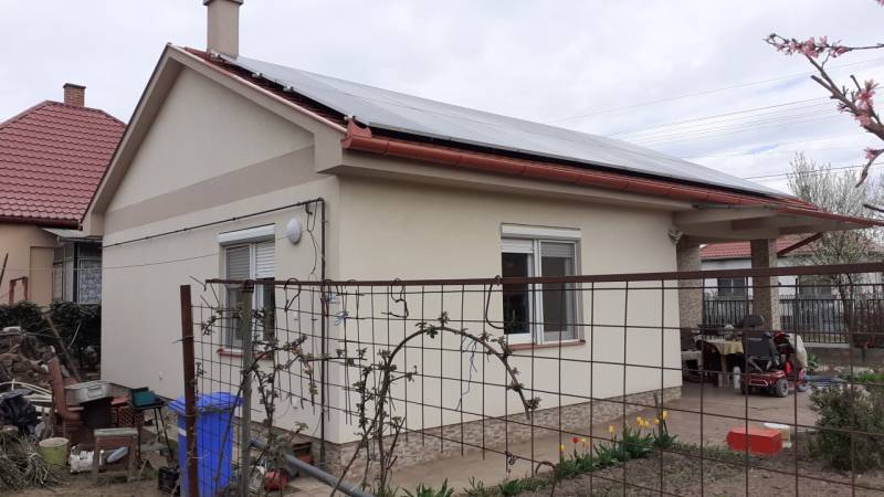 Eladó Debrecen Császár Péter utcán egy új építésű napelemes alacsony rezsijű (A++) kertes családi ház. Ára: 77.900.000 Ft.Nézze meg videónkat: http://youtu.be/zTvY0rxOnQ8Az ingatlan mérete: - telek mérete: 367 nm, - a ház bruttó mérete: 66 nm.Az épület hasznos alapterülete 56nm melyben található: - nagyszoba, - konyha + nappali, - fürdőszoba, - WC, - spájz, - fedett terasz (~10 nm). A kertes ház 2020-ban épült beton alapon, B38-as tégla falazattal. A tetőszerkezete nyeregtető, mely cserépfedéssel van ellátva. Elektromos bojler szolgáltatja a meleg vizet, elektromos kazán látja el a padlófűtést, ami az egész házban megtalálható. Mindenhova 3 rétegű műanyag nyílászárók lettek beépítve, illetve fa beltéri ajtók. 5.0 kW napelem rendszer lett a házra felszerelve, aminek köszönhetően a rezsi igazából csak a vízdíjból áll, ugyanis elektromos fűtést, elektromos bojlert, elektromos főzőlapot és sütőt használnak. Ami még nagyszerű, hogy tölthetjük az elektromos autónkat is, hisz az is ki van építve az épületben. Nagyon fontos a ház bejárata akadály mentesített. A ház mérete alapvetően egy panel méretének felel meg, de itt rendelkezésünkre áll egy nagy sarok telek is. Így ha szeretnénk, a későbbiekben lehet még hozzá toldani, ugyanis a 30%-os beépíthetőségnél akár 110nm is lehet az épület. Amennyiben szükséges a nagyszobát ketté lehet osztani, mivel a tervezésnél is figyeltek erre a lehetőségre (2 ajtó, 2 ablak, megfelelő négyzetméter). Fontos!Az ingatlan per és tehermentes, rövid időn belül beköltözhető!FIGYELEM!A családi ház egy csendes kertvárosi részben, a Nagysándor-telep szép részén található, mely egy nagy potenciállal rendelkező modern kertes házikó. Közel található bevásárló központ, iskola, óvoda, ipari park, M35 felhajtó, boltok, Kenézy Gyula kórház. Mindezek miatt is kiváló lehetőség egyedül állóknak, pároknak, egy gyerekeseknek, hiszen ha bővülne a család, könnyen van lehetőség a ház bővítésre is. De akár befektetésnek is kiváló.Amennyiben több generáció szeretne együtt lakni, vagy egymás mellett lakni, ennél a háznál erre is van lehetőség, ugyanis a mellette lévő nagy ház is eladó, a tulajdonos ugyanaz. Milyen jó lenne, míg a nagy szülök egy akadály mentesített házban laknának, addig a fiatalok egy nagy családos házban, egymáshoz nagyon közel. Ha ilyen lehetőséget keress, akkor kérjük, nézze meg a másik házat is:Ha felkeltette érdeklődését, hívja irodánkat bizalommal!Ha hitelre van szüksége éljen ingyenes, személyre szabott hitel ügyintézési szolgáltatásunkkal is.
