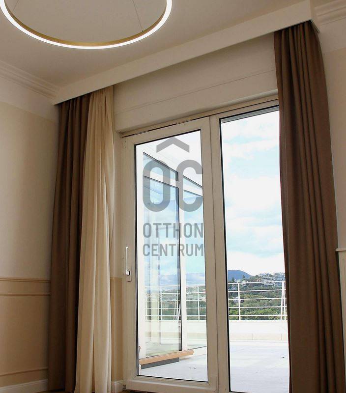 Penthouse a Szent István park felett – Margitsziget-panoráma, 50 m²-es tetőterasz, luxus Újlipótváros szívébenA 110 m²-es, belsőépítész által megálmodott otthon a kifinomult dizájn és a mindennapi kényelem kiegyensúlyozott elegyét kínálja. A lakás szíve az üvegfalú télikert-étkező, ahol télen-nyáron természetes fényben élvezheti a Dunára és a budai hegyekre nyíló kilátást.A tágas belső terek mellett hatalmas privát tetőterasz várja kültéri zuhannyal – ideális hely a város feletti pihenéshez. A lakásban 2 hálószoba, 2 fürdőszoba és egy nagy méretű nappali található, és válogatott prémium bútorokkal berendezett és gépesített. (A bútorok egy része a fotókon még nem látható.)– 110m² lakótér klimatizált üvegfalú télikert-étkezővel, 50m²-es tetőterasszal– Elsőrangú lokáció Újlipótvárosban a Pozsonyi út és a Szent István park mellett – Villamos: 4/6, trolibusz:75, 76, nem messze M3-as Metró, Nyugati Pu.-tol.– Örök panoráma a Szent István Parkra, a Margitszigetre és a budai hegyekre– Lifttel megközelíthető csendes legfelső szint - kerekesszékes használatra alkalmas– Prémium gépesítés, okostévé, okostelefonról vezérelhető klimatizálás és világítás– Távfelügyeletbe kötött riasztó, korszerű nyitás- és füstérzékelés– Parkolás közeli garázsban (bérlet része)– Otthonmenedzsment-asszisztencia (pl. tetőterasz ápolása) a bérlet része – takarítás igény szerintEz az ingatlan több mint lakás – életforma azoknak, akiknek fontos a tetőterasz és a télikert nyújtotta hangulat és a dunai horizont zavartalan látványa.Bérleti feltételekSzerződéskötéskor 2 havi kaució és 1 havi bérleti díj fizetendő.Minimum bérleti idő: 2026 július 31-igNemdohányzó ingatlan; szabadon mozgó kisállat nem hozhatóKözjegyzői okiratba foglalt kiköltözési nyilatkozat