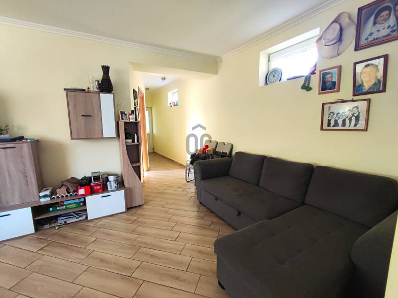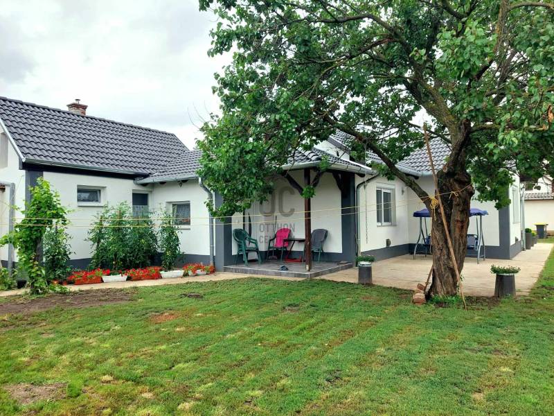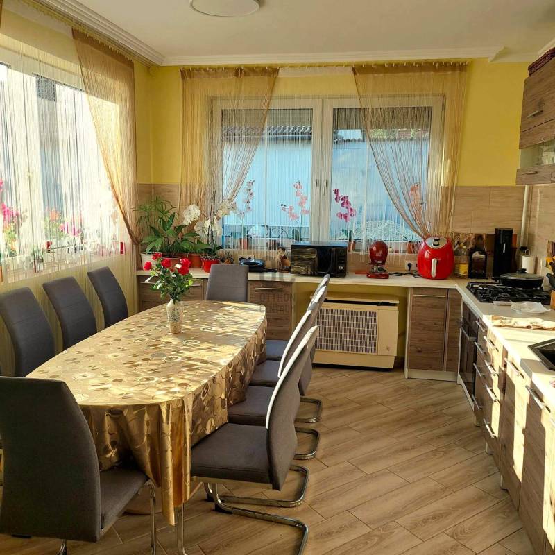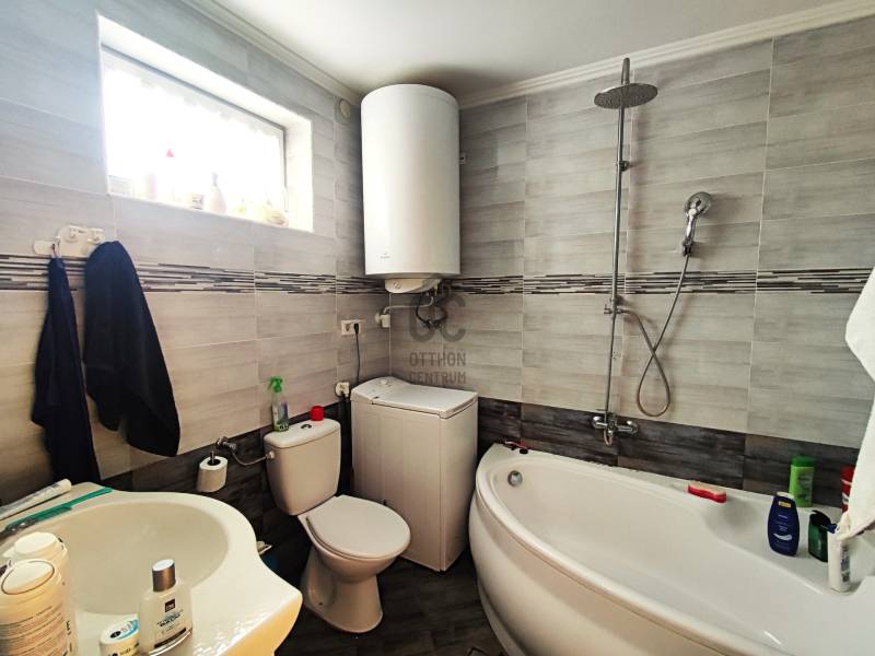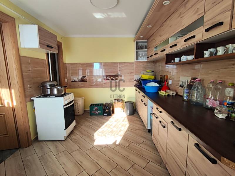 Hajdúböszörmény csendes, mégis központhoz közeli részén eladó egy 87 m²-es, 2 szobás, amerikai konyhás felújított családi ház, 1003 m²-es rendezett telken.Az ingatlan 1960-ban épült, de 2023-ban teljes körű felújításon esett át, így az új tulajdonosnak már csak költöznie kell!A házban két tágas szoba (16,21 m² és 13,57 m²), valamint egy nagy, világos, 25,77 m²-es konyha–étkező–nappali került kialakításra. Emellett található egy hátsó konyha (10,36 m²), fürdőszoba (4,83 m²) és kamra is, így a helyiségek elrendezése rendkívül praktikus.Jelenleg a hátsó konyha nyárikonyhaként üzemel, de a ház kialakításának köszönhetően az ingatlan könnyedén átalakítható kétgenerációs házzá.Az ingatlan 2 éve teljes felújításon esett át: megtörtént a víz-, gáz- és villanyvezetékek cseréje, külső szigetelést kapott a ház és a födém is, új tető, modern nyílászárók és redőny is beépítése került.A tágas, 1003 m²-es udvaron szőlőlugas, kiskert, melléképületek, fúrt kút 3 kiállással (locsoláshoz), valamint egy pince is található.Főbb jellemzők:- 87 m² lakótér- 1003 m² telek- 2 szoba + nappali–konyha–étkező- teljes felújítás (2023)- vegyes falazat- fűtése gáz konvektor- 2 konyha – akár kétgenerációs háznak is alkalmas- fúrt kút, pince, melléképületek- csendes, mégis központ közeli elhelyezkedésA ház városközponthoz közeli, mégis csendes; buszmegálló és boltok pedig rövid sétával elérhetők. A közlekedés kiváló.Ez az ingatlan tökéletes választás lehet családoknak, összeköltözőknek vagy nyugodt, zöldövezeti otthont keresőknek.Ha kérdése van, vagy szeretné megtekinteni az ingatlant, hívjon bizalommal!