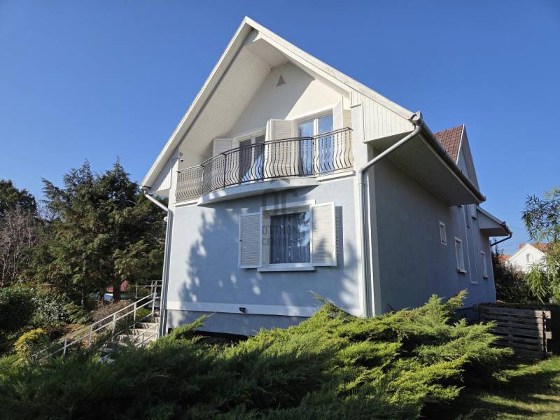 Ábrahámhegy belterületi részén található ez a 3 szintes, tégla építésű, családi házként bejegyzett ingatlan, mely elhelyezkedését tekintve nyugodt, csendes részen fekszik, mégis közel a Balaton partjához és Ábrahámhegy központjához.Az épület szintenkénti elosztása:- pinceszint/ alagsori rész: 2 különálló garázs (19m² és 18m²) , teakonyha (5m²) , zuhanyzó + wc (4m²), közlekedő (10m²), lépcsőház (8m²) és két nagyméretű tároló ( 26m² és 30m²)- földszinti rész: 2 hálószoba (15m² és 16m²) , konyha- étkező (25m²) , fürdőszoba (8m²), wc (2m²), közlekedő (10m²), lépcsőház (8m²) , nappali ( 27m²)- emelet: 3 hálószoba (2 12m²-es és egy 25m²) , nappali konyhakialakítási lehetőséggel (31m²) , 2 fürdőszoba (6-6m²), közlekedő (12m²), lépcsőház (8m²)A ház összközműves, fűtését gázkazán látja el, emellett pedig a földszinti részen, a nappaliban kiépített mesés cserépkályha is kellemes hőmérsékletet tud biztosítani a hűvösebb napokon.Kiépített riasztórendszer és kamera felel a biztonságért.A házhoz tartozó telekterület 1386 m²-es, minden oldalról kerítéssel határolt, automatizált kapuval.Az udvar szépen parkosított, intimitását a telket körülölelő sövényfal adja. Számos gyümölcsfa és örökzöld biztosítja az árnyékot a melegebb nyári napokon. Az udvar méretéből adódóan bőven jut hely még gyermekjátszótérnek, medencének, vagy nyári konyhának.Ajánlom az ingatlant mindazok figyelmébe, akik nagyobb családi otthont, nyaralót vagy balaton-parti befektetést keresnek akár turisztikai használatra is!Amennyiben kérdése merülne fel, vagy szeretné az épületet megtekinteni, úgy kérem keressen megadott elérhetőségeim egyikén!