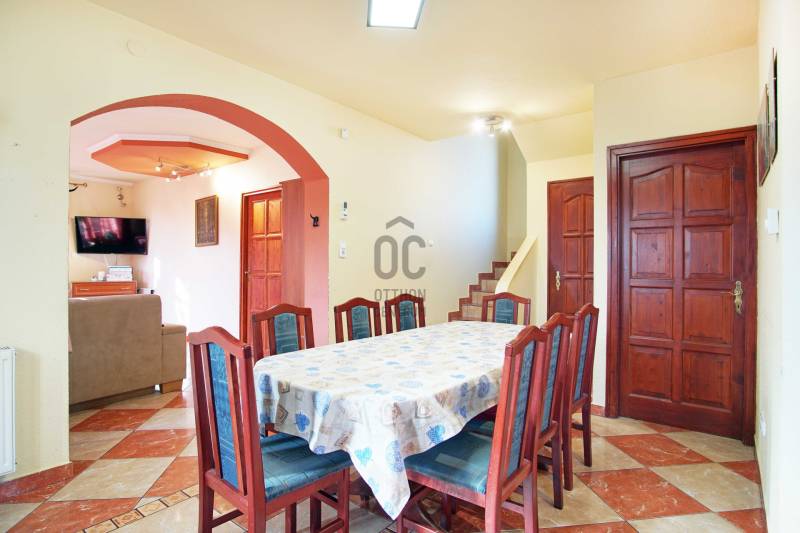 Megvételre kínálunk Pomázon, egy 846 m²-es, gondozott telken fekvő, masszív szerkezetű, kényelmes elrendezésű DUPLA családi házat, különálló garázzsal, melléképülettel és hangulatos, boltíves pincével.Főépület:- A 2004-ben, 38 cm-es Porotherm téglából, betonfödémmel épült ház kimagasló minőséget képvisel a kor építési színvonalához mérten.- A tulajdonos saját részre tervezte, így a belső elrendezés átgondolt, a szobák tágasak és kényelmesek, ami manapság ritka érték.- Mindkét szinten teljes értékű fürdőszoba és WC található, ami a többgyermekes vagy kétgenerációs családok számára kifejezetten praktikus megoldás.- A ház nagy teraszáról, felső szintjéről és szobáiból gyönyörű panoráma tárul elénk, a hátsó kert pedig intim, kellemes méretű teret biztosít a családi eseményekhez, pihenéshez vagy gyerekek játékához.- Az épület alatt egy hangulatos, kb. 35 m²-es boltíves pince is található, amely borospinceként, tárolóként vagy akár hobbyhelyiségként is jól hasznosítható.- A homlokzaton jelenleg néhány befejezésre váró rész (pl. színezés, erkélyek kialakítása) van, amelyeket a jelenlegi tulajdonos a birtokbaadásig befejez.Különálló épületek:- A ház mellett egy kétállásos, vízesblokkal ellátott garázs kapott helyet, valamint egy felújított, klasszikus parasztház, amely összeköltöző családtagok, vállalkozás vagy akár bérbeadás céljára is kiválóan alkalmas.- Ez a melléképület számos lehetőséget kínál azok számára, akik otthon és munkahely kombinációját keresik, vagy állandó kiegészítő bevételben gondolkodnak.Összegzés:- Ez az ingatlan igényesen megépített, jól átgondolt családi ház, amely egyaránt megfelel:- többgenerációs együttélésre,- vállalkozás és otthon kombinálására,- vagy hosszú távú, értékálló befektetésnek.A ház minőségi szerkezete, praktikus elrendezése és a melléképületek által kínált extra lehetőségek ritka kombinációt jelentenek Pomáz ingatlanpiacán.Várom a hívását! Amennyiben nem venném fel, ígérem amint lehetőségem adódik, visszahívom.Ez az ingatlan a \"Felező csomag\" megbízási portfólióhoz tartozik. Részletek az Otthon Centrum weboldalán.