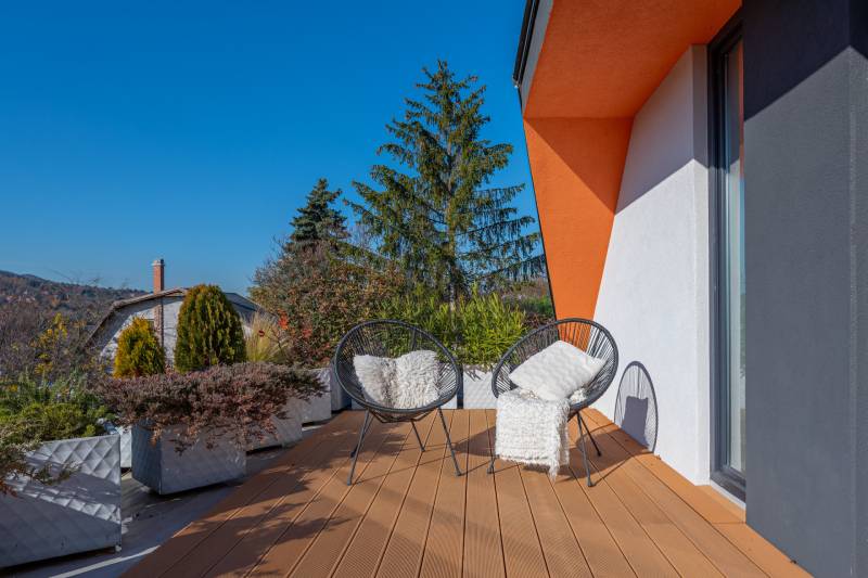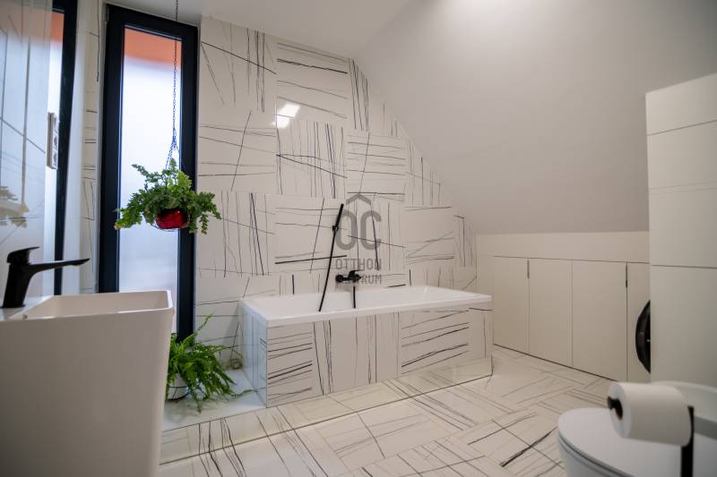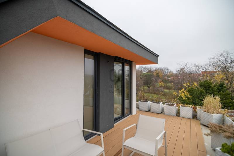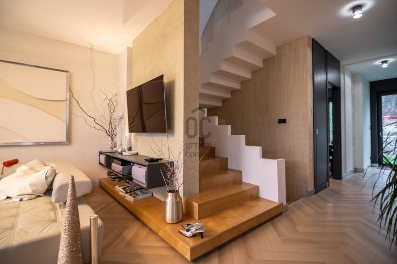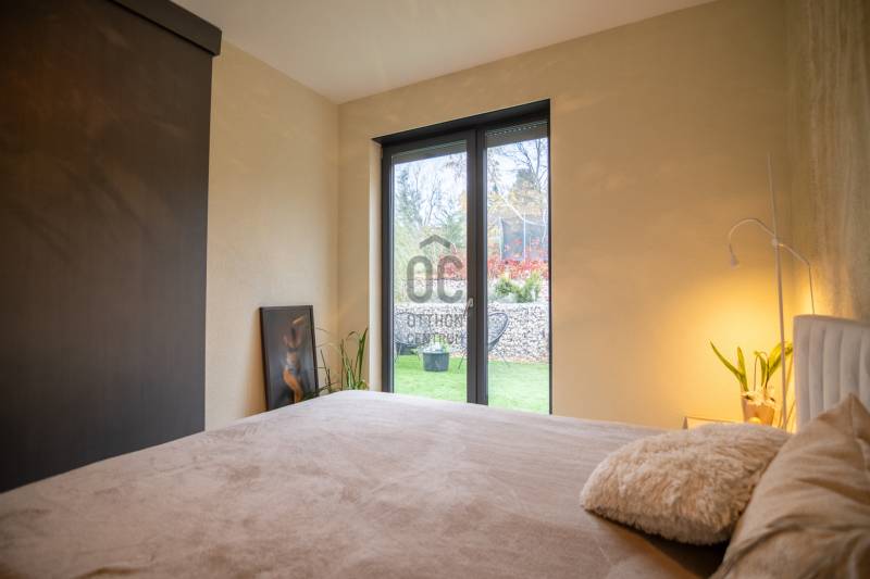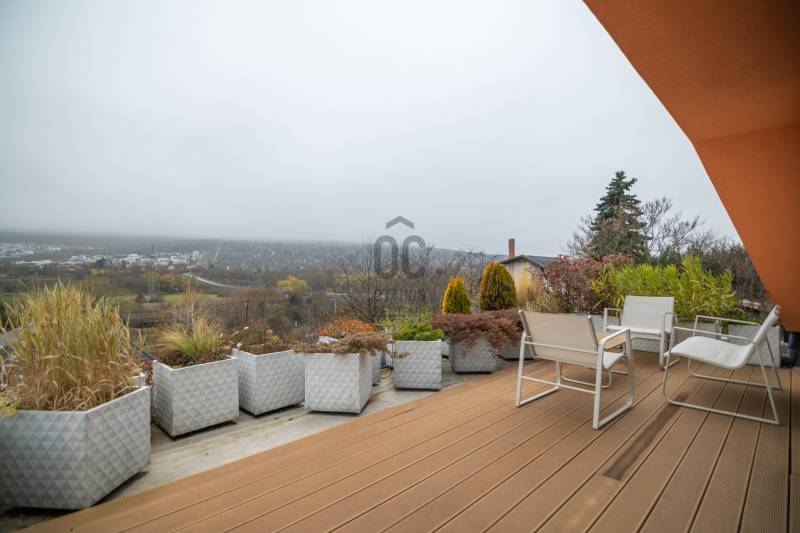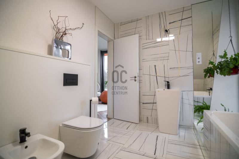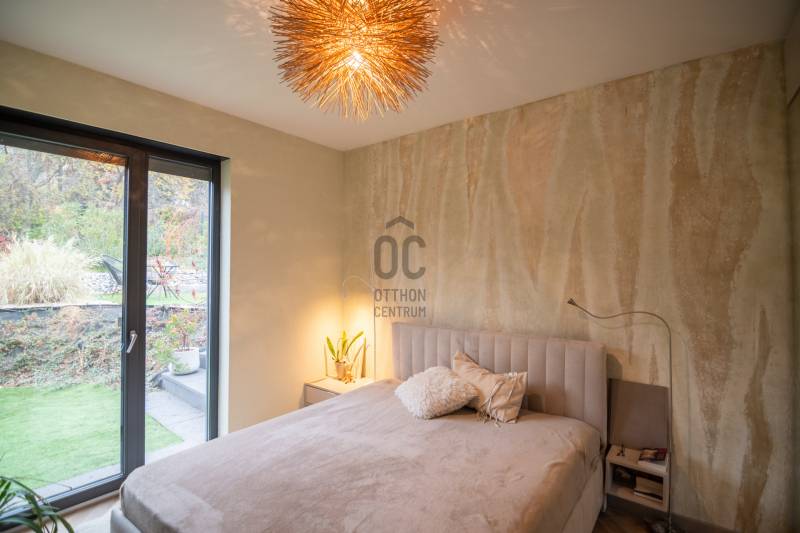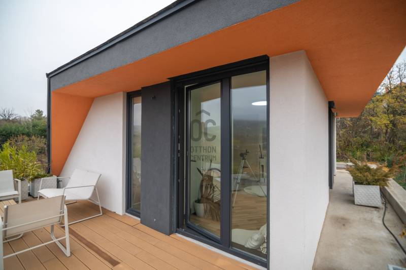 A III. kerület csendes, zöldövezeti részén, Ürömhegyen kínálunk eladásra egy minden részletében átgondolt, egyedi tervezésű otthont. A modern építészet és a természetközeli életstílus tökéletes harmóniában találkozik ebben a házban, amelyet kiemelkedő szakmai referenciákkal rendelkező belsőépítész alkotott meg.A ház egy rézsűs telek felső részén áll, így a panoráma és a fény egyszerre része a mindennapoknak. A letisztult formák, természetes anyagok és a napfényes terek elegáns, mégis otthonos hangulatot teremtenek.FŐBB JELLEMZŐK- Prokoncept építési rendszer, német fa szerkezeti elemek- A+ energetikai besorolás, levegő-víz hőszivattyús rendszer- Padlófűtés, mennyezethűtés-fűtés, hővisszanyerős szellőztetés előkészítve- Rehau nyílászárók, mindenhol motoros redőnyök- 20 millió Ft értékű egyedi konyha és beépített bútorzat- Beépített gépek: AEG főzőlap, Whirlpool sütő és mikro, Gorenje hűtő- Klarstein elszívó, fekete csaptelepek, screenüvegek a vizes helyiségekben- Jacuzzi-előkészítés a panorámás tetőteraszon- 2 autós garázs, elektromos töltő és napelem-előkészítésKERT ÉS KÜLSŐ TEREKA ház körül kialakított, mintegy 400 nm-es kert a természetes anyagokra és a rendezettségre épül.A geotextíliás alapozás és a dísznövényeknek köszönhetően a kert szinte gondozásmentes, mégis élő, harmonikus zöldfelületet kínál.A teraszról a panoráma a főszereplő: az előtető véd az esőtől és a naptól, a csöpögő rendszer pedig automatikusan öntözi a növényeket.A tér kialakítása lehetővé teszi jacuzzi vagy kisebb medence elhelyezését is – a nyugalom és a kényelem kompromisszumok nélkül adott.LOKÁCIÓ ÉS KÖZLEKEDÉS- 218-as buszmegálló pár lépésre található, közvetlen kapcsolatot biztosít Óbudával (Szentlélek tér).- Az Aranyvölgy vasútállomás 5 perc sétára elérhető, ahonnan a Nyugati pályaudvar 15 perc alatt megközelíthető.- Autóval az Árpád híd 15 perc alatt elérhető, a Bécsi úti bevásárlóközpontok (Tesco, Aldi, Praktiker, Decathlon) pedig mindössze néhány percre találhatók.A környék infrastruktúrája fejlett: iskola, óvoda, gyógyszertár, kisboltok és sportlehetőségek is könnyen elérhetők. A Csillaghegyi strandfürdő és uszoda autóval néhány perc, akárcsak a közeli túraútvonalak és kilátópontok.Földszint:Tágas, 42 nm-es nappali–konyha–étkező nagy üvegfelületekkel és dél-nyugati tájolással.Teljesen gépesített, beépített konyha étkezőpulttal kombinált főzőszigettel.Két külön nyíló, kertkapcsolatos hálószoba és zuhanyzós fürdő vendég-WC-vel.A nappaliból közvetlen kijárat az árnyékos teraszra és a gabion zuhanyfallal kialakított pihenőkertbe.Emelet:Világos, egybenyitott tér, amely igény szerint master bedroom + gardróbként is kialakítható.Külön fürdőszoba háztartási funkcióval és tárolókkal.A 28 nm-es panorámás tetőteraszról a Hármashatár-hegy látványa tárul elénk, jacuzzi-előkészítéssel.Garázsszint / Gépészet:Kétállásos garázs, automata kapuval.Szauna, kondiszoba vagy tároló kialakítására alkalmas hátsó tér.Hőszivattyús padló- és mennyezeti hűtés-fűtés, előkészített napelem és elektromos autótöltő csatlakozás.Ez az otthon azoknak szól, akik értékelik a modern építészet időtálló formavilágát, a természetes fényt, és a letisztult, gondosan megtervezett tereket.Ürömhegy egyik legszebb pontján található, ahol a panoráma, a nyugalom és a minőség valódi értékké válik.Amennyiben felkeltette az érdeklődését ez minden részletében művészien kidolgozott ingatlan, kérem keressen bizalommal!Díjmentes, bankfüggetlen hiteltanácsadással támogatjuk vevő ügyfeleinket a számukra legelőnyösebb finanszírozási döntések meghozatalában.Opcionálisan igénybe vehető kiegészítő szolgáltatásainkkal – mint ügyvédi közreműködés, energetikai tanúsítvány vagy villamos biztonsági felülvizsgálat – teljes körű szakmai támogatást nyújtunk az adásvétel folyamatának minden egyes lépésénél.