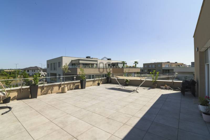 PENTHOUSE-ÉLMÉNY ZÖLDÖVEZETBEN – Álomotthon a Szőlőliget Ökopark szívében!Budapest XVII. kerületében, a Naplás-tó közvetlen közelében, eladó egy exkluzív, 81 nm-es PENTHOUSE lakás a Furmint házak egyik legmodernebb épületének legfelső emeletén! A lakáshoz tartozik egy lenyűgöző, 73 nm-es panorámás terasz, valamint saját gépkocsibeálló is (ára: 2 millió Ft). A liftes, zárt udvaros társasház biztonságos, rendezett környezetet nyújt – elektromos beléptetőrendszerrel.A PENTHOUSE lakás főbb jellemzői:• Mennyezeti hűtés-fűtés korszerű Stiebel Eltron hőszivattyús rendszerrel• Mobilról vezérelhető okosotthon rendszer (NGBS)• AA+ energetikai besorolás, fürdőben padlófűtés• Alumínium redőnyök mindenhol• Gépesített, modern konyhabútor – az árban• Nappaliból és két hálóból is kijárat a hatalmas panorámás tetőteraszraEnergiatakarékos & fenntartható:Átlagos havi fenntartási költség: csupán 52.000 Ft, amely minden közüzemi átalányt tartalmaz (víz, fűtés-hűtés, lift, szemét, takarítás, kertgondozás, biztosítás, felújítási alap). Egyedi mérés alapján éves elszámolás. A hűtés-fűtés költsége akár havi 8.000 Ft-ra is leszorítható!Kiváló lokáció, zöld övezet, prémium életérzés:• Pár perc séta a Naplás-tóhoz és erdőhöz – tökéletes természetkedvelőknek• Óvoda, bölcsőde 100 méteren belül, új egészségügyi központ nyílik a közelben• Bevásárlási lehetőségek, éttermek, szépségápolás karnyújtásnyira• Csendes, családbarát környék – igazi zöld oázis a városon belülKinek ajánljuk ezt a különleges PENTHOUSE-t?• Családoknak (akár CSOK Plusz támogatással)• Home office-ban dolgozóknak, akik értékelik a tágas tereket• Befektetőknek – értékálló, könnyen kiadható prémium ingatlanKészen áll a költözésre – csak a bőröndödet hozd!Ha egy modern, energiahatékony, mégis természetközeli PENTHOUSE otthonra vágysz Budapest határain belül, akkor ez az ingatlan neked szól!Ne habozz! Hívj most, és tekintsd meg élőben – szerelem első látásra garantált!