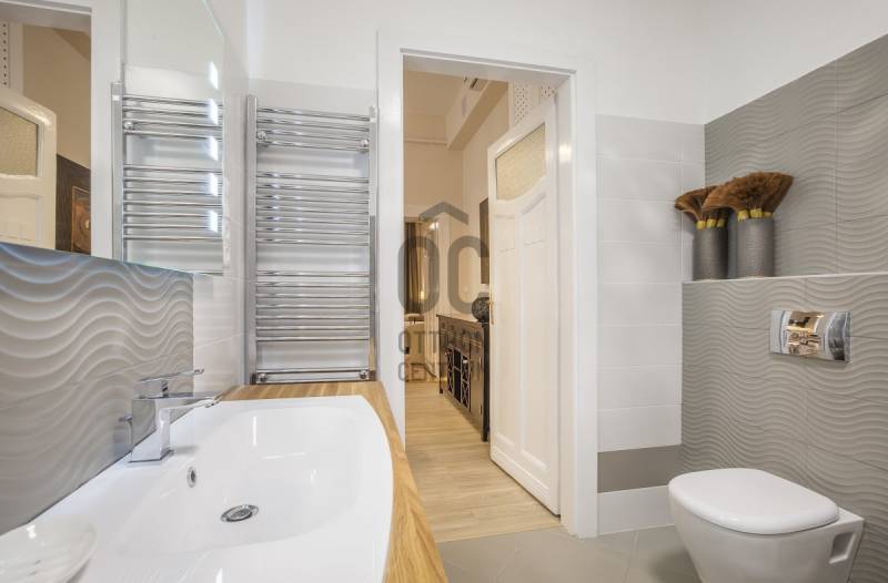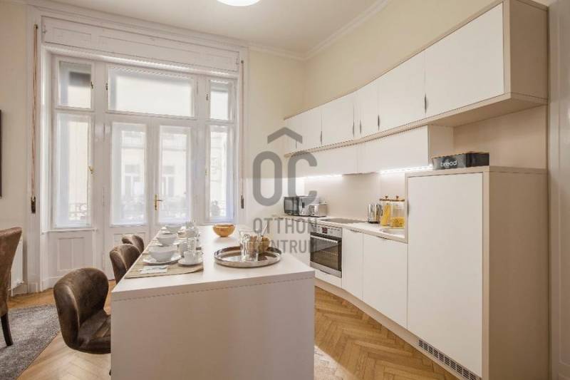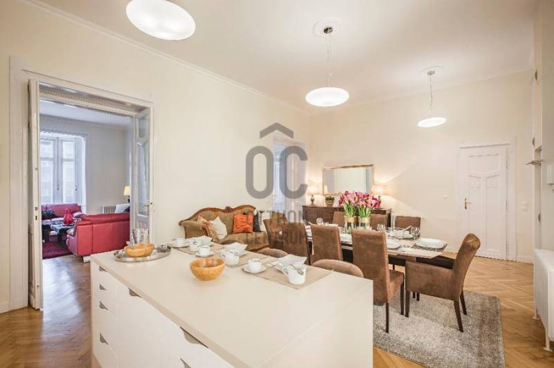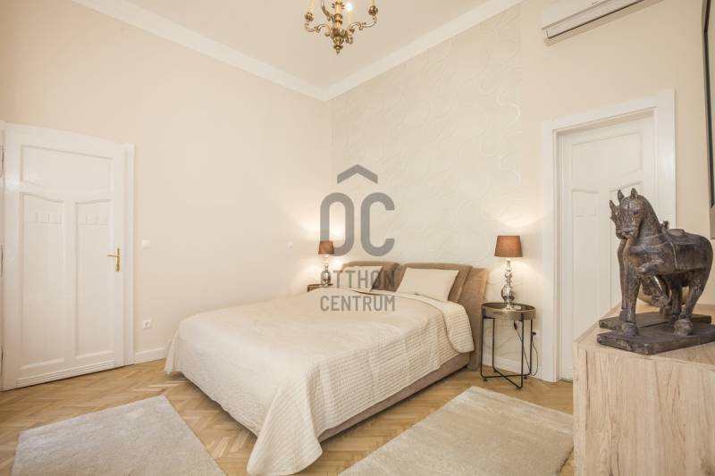 A Deák tér és az Astoria között, egy impozáns épületben található az ingatlan, mely három önálló lakásra lett kialakítva. Az összenyitása is megoldható, mert úgy lett kialakítva, ezért szét-vagy összeköltözőknek, irodának, rendelőnek, kiadásra tökéletes választás!Ingatlan:- 234 nm, 3,8 m belmagasságú, felújított, gáz-cirkó fűtésű, inverteres klímás 8 szobás, 3 fürdőszobás+WC-s, 2 önálló WC+kézmosós, teraszos lakás.- A szobák, részben utcai-részben pedig udvari nézetűek.- Az ingatlan egy akadálymentes, liftes társasház, II. emeletén helyezkedik el.Környezet:A legfelkapottabb része a fővárosnak, ahol sétatávolságra van a Zsinagóga, az Andrássy út, a Belváros, a Madách tér, az Astoria.