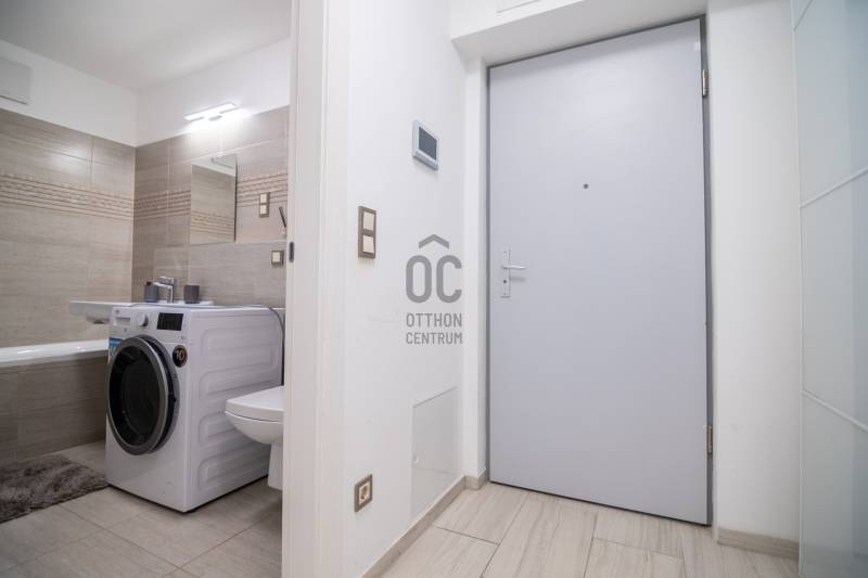 Budapest egyik leggyorsabban fejlődő városrészében a IX. kerületi Allure Residenceben kínálunk eladásra egy kiváló elrendezésű fiatalos lakást.A K-i fekvésnek és a hatlamas üveg felületeknek köszönhetően rendkívül világos 3. emeleti lakásban egy hálószoba is kialakításra került, ami így még praktikusabban kihasználható.A 7 nm-es terasz a gondozott parkosított belső udvarra néz.A lakás házközponti fűtéssel és egyedi klímával ellátott. A társasház közös használatú területei gondozottak, a bejáratnál portaszolgálat fogadja az ingatlanba érkezőket.A lakás berendezett, a konyhabútor és a tágas előszobai beépített szekrény a vételárban van, minden további bútor külön megállapodás tárgyát képezi.Lokáció:Közelben bevásárási lehetőség ( Spar, Lurdy- ház, gyógyszertár) , illetve edzőterem sétatávolságra található.A Dunapart, a MÜPA, 3 perc séta távolságban a Bálna, Váci utca, Lánchíd – 15 percen belül elérhető.Ideális első lakásként, irodaként vagy hosszútávú befektetésként is egy dinamikusan fejlődő városrészben.Ez az ingatlan a \"Felező csomag\" megbízási portfólióhoz tartozik. Részletek az Otthon Centrum weboldalán.