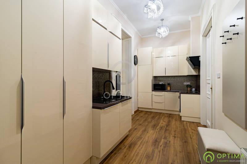 TELJESKÖRŰEN FELÚJÍTOTT, 2 SZOBÁS LAKÁS A PALOTANEGYEDBEN Budapest VIII. kerületének legkeresettebb városrészében, a Palotanegyedben, a Szentkirályi utcában kínálom megvételre ezt a 95 m2 alapterületű, I. emeleti, 2 szobás téglalakást. A ház külső és belső homlokzata is kiváló állapotban van. A lakás egy külön zárt folyosóról közelíthető meg, így csak 1 közvetlen szomszéd van. A lakás TELJES KÖRŰ felújításon esett át ebben az évben: - cserére kerültek a vezetékek (villany-, gáz- és vízvezetékek egyaránt), - beépítésre kerültek új hang- és hőszigetelő műanyag ablakok, - cserére kerületek a burkolatok a konyhában és a fürdőben egyaránt, - beépítésre került egy gépesített konyhabútor,- kialakításra került a cirkó fűtés, - beépítésre került légkondicionáló. A közös költség összege havonta 29.000 Ft, amely tartalmazza a szokásos tételeket, mint a LIFT használatot, a szemét elszállítását, a lépcsőház tisztántartását. A közüzemi fogyasztások mind egyedi mérőórák alapján kerülnek elszámolásra. A KÉPEKEN LÁTHATÓ BÚTOROK ÉS BERENDEZÉSI TÁRGYAK A VÉTELÁR RÉSZÉT KÉPEZIK. Az ingatlan BELVÁROSI elhelyezkedésének köszönhetően BEFEKTETÉSI céllal való vásárlása is kitűnő választás lehet. A lakás megtekintése miatt VÁROM HÍVÁSÁT akár hétvégén vagy az esti órákban egyaránt!