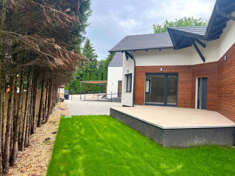 AZONNAL KÖLTÖZHETŐ, NAPPALI+NÉGYSZOBÁS IKERHÁZ, FÓTLIGET-LAKÓPARKBANMegvételre kínálunk egy nettó 134 nm-es, 2 szintes Ikerházfelet, nappali+4 hálószobával, Fótliget Lakópark, egyik legcsendesebb utcájában.Beépített, egyedi gyártású, gépesített konyhabútorral, 318 nm-es telekkel, kerttel, 2 autó beállására alkalmas térkövezett felszíni beállóval.A ház teljes körűen és frissen felűjított, mind gépészetileg, mind pedig esztétikailag.Fótliget-lakóparkról :Budapest közvetlen közelében található, közigazgatásilag Fóthoz tartozik.A 45 hektáron elterülő ős fás, ligetes jellegű és kiváló atmoszférájú sorompóval zárt, 24 órás portaszolgálattal rendelkező exluzív épületekkel körülvett környezet, bárki számára ideális otthon lehet.A mai környezettudatos és energiatakarékos elvárásoknak megfelelően, gondosan kiválasztott Mitsubishi hőszivattyús rendszer biztosítja, a ház fűtését és hűtését, továbbá gondoskodik a tiszta levegőről is.A földszinten található a tágas amerikai konyhás nappali, ahonnan nyílik a több mint 30 nm-es terasz, valamint egy wc.Az emeleten található a 4 különnyíló hálószoba és két fürdőszoba egy kádas és egy zuhanyzós fürdőszoba.További felmerülő kérdéseivel forduljon hozzánk bizalommal, telefonos egyeztetés, a hét minden napján, megtekintés rugalmasan.Ferge Imre