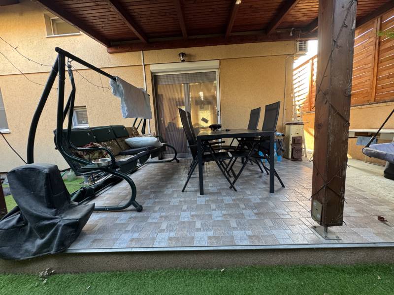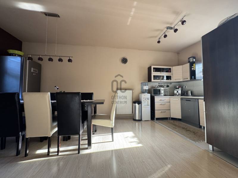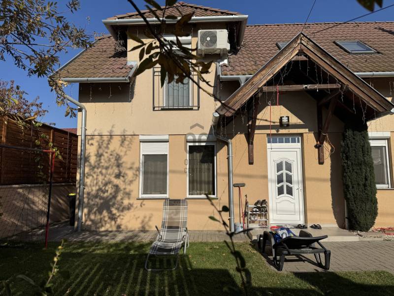 Fót az északi agglomeráció dinamikusan fejlődő városa, történelmi múlttal és ehhez méltó csodálatos kultúrkörrel rendelkezik a Fővárostól egy karnyújtásnyira.Gyönyörűen gondozott köztereivel, nívós intézményeivel, zöld határaival és remek infrastruktúrájával méltán vált a kiköltöző Családok dobogós választásává az elmúlt években.Itt, csendes utca végében került eladósorba egy kiváló adottságú IKERHÁZ.Szélső, sarki épület, így abszolút szeparált, intim kerttel rendelkezik, mely éppen akkora hogy gondozása nem teher és tökéletesen helyet adhat családi BBQ partyknak, létesíthető benne gyermekjátszótér, grillterasz és így is marad hely autóbeállásra valamint a konyhakertnek.Fiatal építésű, ehhez mérten korszerű, dryvit palástba bújtatott homlokzat, gondosan szigetelt födém és tetősík, műanyagtokos thermoüveges nyílászárók és kondenzációs gázkazánról biztosított fűtés. A nyári hőszabályozást klímaegységek segítik, a kerti tárolásra pedig faházikó áll rendelkezésre.2 szinten bruttó 100m2-el gazdálkodik, melyben optimális elrendezés valósult meg:Földszinten kényelmes előszoba, világos, nagy, teraszkapcsolatos nappali, tágas étkező-konyha, lépcső alatti mosókonyha wc-vel valamint a nagy fedett terasz kaptak helyet. Emeleti szinten 3 hálószoba, közlekedő és nagy fürdőszoba alkotják a helyiséglistát. A szobák saját franciaerkéllyel rendelkeznek, a tetőteres kialakítás ellenére jól bútorozhatóak, és kellemes világos életteret biztosítanak Lakóiknak. A fürdőszoba nagy, káddal és zuhanykabinnal is ellátott.Optimális, elrendezés, kényelmes tér, igényes kialakítás!Tökéletes választás azoknak, akik Budapestről kiköltözve vágynak a kertre, akik családalapítás céljából keresgélik új Otthonukat és olyan környezetben képzelik el a jövőjüket ahonnan a közlekedés megoldott, a szomszédság rendezett, a ház pedig fiatalos és nem kell hozzányúlni még jó pár évig!Jöjjön el, tekintse meg, FRISSEN VAN PIACON és biztos hogy nem sokáig!-alaprajz feltöltése folyamatban-