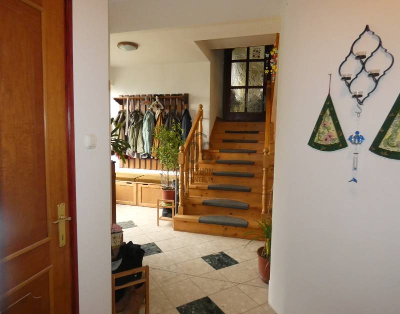 Pécs, ürögi rész elején eladó egy három szintes 2 generáció együttélésére alkalmas családi ház. A ház földszinti részén helyezkedik el a ház gépészeti berendezése, kamra, boltíves pince, egy beállásos garázs és egy vizes blokk zuhanyzóval. A felső szinten lévő lakások megközelíthetők a belső lépcsőházon keresztül vagy a külső lépcsősoron is. Az első szinten lévő lakás konyha, étkező kis nappali, hálószoba kialakítású. Itt kapott még helyet egy vendégszoba és két fürdőszoba és mosdó is. Mindkét szobához kapcsolódik terasz, amelyről szép kilátás nyílik a szembe lévő erdős részre. A közös előtérből egy lépcső vezet fel a 2. szinten lévő lakásba. Itt egy hatalmas nappaliba léphetünk be, amelynek benapozottságáról a nagy ablakok gondoskodnak. A nappaliban lévő kandalló nem csak hangulatot, de kellemes meleget is ad. A konyha átadó ablakon keresztül kapcsolódik az étkezőhöz. Félemeleti részen helyezkedik el a két hálószoba( egyik még befejezésre vár) gardrób, fürdőszoba és mosdó. A ház gépészete kiváló, fűtése gázcirkó, a hőleadás padló és falfűtéssel történik. 6 kw-os napelem, napkollektor, központi porszívó szolgálja a lakók kényelmét. A telken fúrt kút is található. A telek teraszos kialakítású, pergola - kiülő is található. A telek utcafronti részén több gépkocsi beállására is van lehetőség.