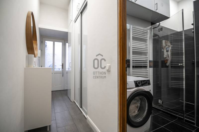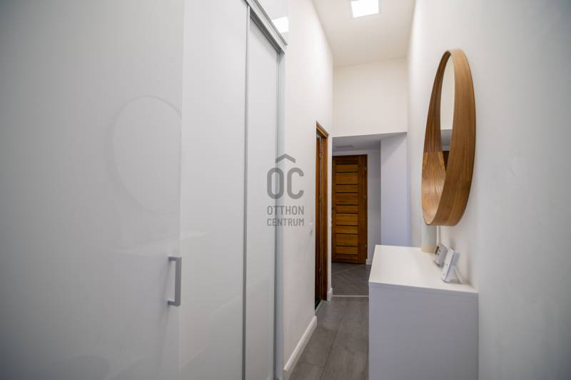 MIÉRT EZT VÁLASSZA•Két különnyíló hálószoba és tágas amerikai konyhás nappali, modern kialakítással•Pazar kilátás a Ferenc körútra, Petőfi hídra és a Dunára•Luxus kivitelű konyha Siemens prémium gépekkel•Geo-áramos padló- és mennyezetfűtés, fal- és plafonhűtés a legkorszerűbb technológiával•Rendkívül alacsony fenntartási költségek – várható összes rezsi: 13 ezer Ft/hó plusz közös költségINGATLANA lakás a Boráros tértől mindössze 80 méterre található, egy kulturált, szépen karbantartott épület harmadik emeletén. Az ingatlan 2 hálószobával rendelkezik, melyek különnyílnak a tágas, amerikai konyhás nappaliból. A modern dizájn és a térkihasználás kiemelkedően jó, akár egy új építésű lakásnál. A lakás 2019-ben került teljeskörűen felújításra, melynek során az elaktromos hálozat is felújításra került és új energiahatékony fűtésrendszer is kialakításra került.A luxus kialakítású konyha minden részletében átgondolt: Siemens prémium kategóriás gépek gondoskodnak a praktikus elrendezésről, a harmonikus színvilág pedig stílusos megjelenést biztosít. A lakás bőséges természetes fényt kap, azonban a csend is garantált, mivel az új nyílászárók 3-rétegű üvegezéssel rendelkeznek, és a lakás minden oldalról kiváló hő- és hangszigetelést kapott. A jobb térkihasználás jegyében egy padlás / tároló is kialakításra került az előszoba felett.KÖRNYÉKA lakás Budapest 9. kerületében, a belvárosban található, a Mester utca és Ferenc körút sarkán. Közvetlen közelében van a Boráros tér, mindössze 80 méterre. A környék kiváló közlekedési kapcsolatokkal rendelkezik, több busz- és villamosmegálló elérhető néhány percen belül. A Duna közelsége és a lenyűgöző kilátás további vonzerőt biztosít az ingatlannak. A környéken számos szolgáltatás, bevásárlási lehetőség és étterem található.MŰSZAKI ADATOK•Geo-áramos padló- és mennyezetfűtés, fal- és plafonhűtés•3-rétegű hő- és hangszigetelő ablakok•Siemens prémium kategóriás konyhai gépek•Levegős hőszivattyúval működő fűtési és hűtési rendszerKÖLTSÉGEK•Közös költség: 40.040 HUF/hó (~104 EUR/hó)•Átlagos rezsi költség: 13.000 HUF/hó (~34 EUR/hó)PARKOLÁSUtcai parkolás fizetős zónában.Irányár: 129.600.000 HUF