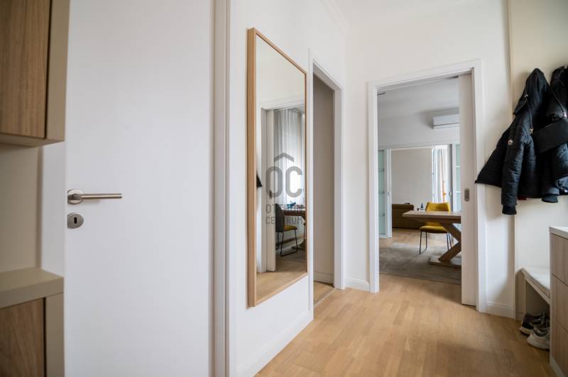 Eladó egy 93 m²-es, 4 szobás, kiváló állapotú, tágas társasházi lakás Lágymányos egyik legjobb részén. A lakás a teljes 5-ik emeleten egyedül helyezkedik el, így rendkívüli privát, csendes, zárt érzetet biztosít – valódi ritkaság a környéken.A ház liftes, a lépcsőház és a közös területek rendezettek, karbantartottak. A fűtés házközponti egyedi méréssel, a lakás délnyugati tájolású, utcai nézettel.Parkolás: a ház alatt található magánteremgarázsban időszakosan bérelhető vagy vásárolható beálló (kb. 30.000 Ft/hó-tól). A környéken ez nagy előny.Helyiségek: tágas nappali (24 m²), három különnyíló szoba, nagy étkezős konyha (16 m²), fürdő + WC, külön WC, gardrób, közlekedők.Nappalija szuper világos, mivel az erkély rész teljesne be lett építve és ott fal helyett végig üveg van. Állapot: lakás – kiváló, homlokzat – jó, lépcsőház – kiváló.Lokáció: Bartók Béla út – galériák, kávézók, BME/ELTE, Móricz és Gellért tér pár perc sétára. Közlekedés kiemelkedő: 4-6, 19, 49-es villamos, gyorsbuszok.Birtokbaadás: max. 4 hónap, de akár hamarabb is lehetséges.Az ingatlan a Hűség értékesítési csomag keretében érhető el, amelynek részleteiről szóban tudunk egyeztetni. Keressen bizalommal, ha megtekintené.Ez az ingatlan a \"Hűség csomag\" megbízási portfólióhoz tartozik. Részletek az Otthon Centrum weboldalán.