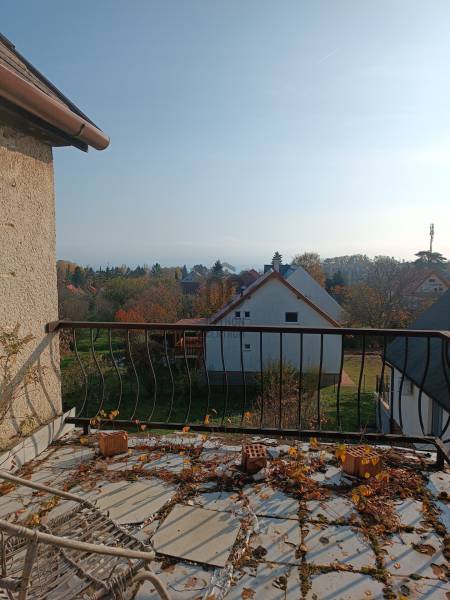 Révfülöp központjában, egy nagyon nem szokványos kialakítású ingatlanra lelhet! Itt nem divat a lakás, a sorház, vagy a társasüdülő, de ha mégis egy olyan ingatlanra vágyik, ahol van közösség, bátran nyitva felejtheti a lakást, semmi baja nem lesz és amitől a vendégei is el lesznek ragadtatva, most megtalálta!Külön helyrajzi számon bejegyzett társasházi lakást mutatok, amely 56 nm-es, és örök balatoni panorámás teraszával egy igazi gyöngyszem!A társasüdülőben 5 lakás van kialakítva, a legfelső emeleti pedig évek óta üresen áll. Pont abban a fázisban van, ahonnan még kényelmesen újra lehet álmodni, különösebb erőfeszítés és kockázat nélkül, a felújítása egészen kevés ráfordítással döbbenetes végeredményt hozhat! (Szerkezetileg stabil, a tető ázásmentes.)Jelen felosztása szerint egy nagy déli tájolású nappali-konyha helyezkedik el középen, ennek két oldalán egy-egy hálószoba, a bejárattal szemben pedig egy fürdőszoba-wc. Saját külső wc és egy tároló is tartozik hozzá, amelyek a bejárat mellől nyílnak. A D-Nyi-i tetőterasz a nappaliból nyílik, innen fantasztikus panorámában gyönyörködhet! A lakáshoz az üdülő kertjéből saját használatra van rendelve egy terület és parkolóhely. Minden lakás külön mérőórákkal rendelkezik! Fűtés nincsen, a gáz nincsen bevezetve, de minden egyéb közmű adott.Aszfaltos úton megközelíthető, kerített kert és zárt kapu van, a Balaton 10 perces sétával elérhető.A lakáshoz külső, nyitott lépcsősor vezet!