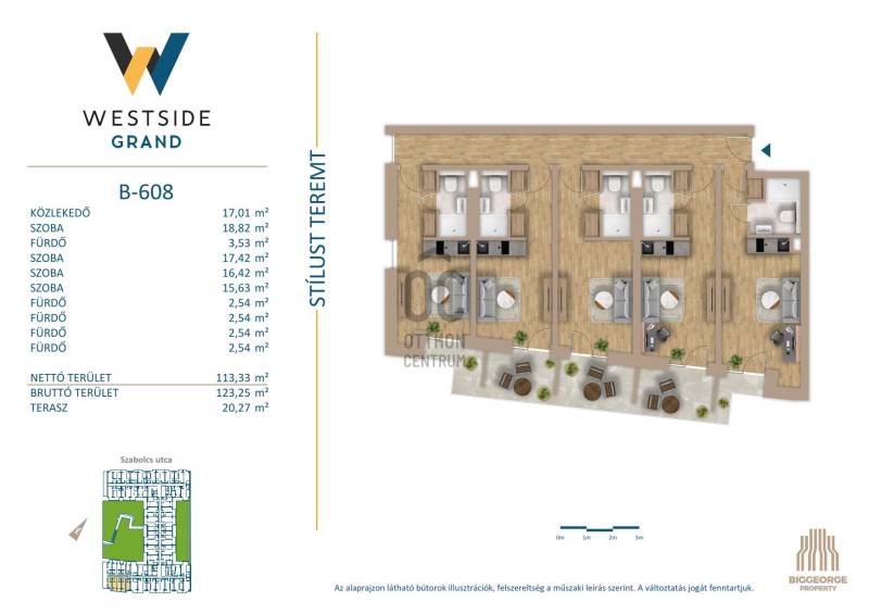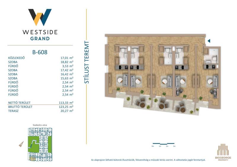 Projekt bemutatásaA PROJEKTRŐLA Westside Grand I-II. a Biggeorge Property Westside fejlesztés sorozatának - a Westside Residence és a Westside Gardent követően - legújabb tagja.LOKÁCIÓBudapest egyik leggyorsabban fejlődő kerületének központi területén, a XIII. kerületben, a Városligettől és a megújuló Nyugati pályaudvartól sétatávolságra épül. A Nyugati pályaudvar környéke az elkövetkezendő években szinte teljesen megújul, a XIII. kerületben elhelyezkedő Szabolcs utcában, illetve közvetlen környezetében számos új építésű ingatlan épült, melyek jelentős értéknövekedést kínálnak a környéken ingatlant vásárlóknak. A több ütemben megvalósuló lakóingatlanfejlesztések hatalmas zöld parkot ölelnek körül, így a lakók akár az erkélyen ülve is élvezhetik a csendet, nyugalmat és zöld környezetet egy központi, belvárosi környezetben is.