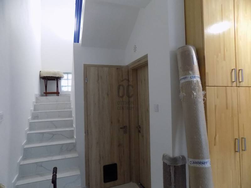 Érd, Tárnokhoz közeli részén eladó egy sorházi, 4 szobás lakás, 2 szinten összesen 80 négyzetméterrel jó közlekedés mellett, szinte azonnal költözhető!Az alsó szinten a bejárati ajtón belépve egy kis előszobán keresztül jutunk el a nappali-étkező-konyha helyiségbe, melyek egy légtérben vannak, ezenkívül itt még egy fürdőszoba, káddal és egy lépcső alatti tároló is adódik.A lakás 3 illetve 4 éve lett felújítva, többek között az összes nyílászáró, a fürdőszoba, a konyhabútor, a konyhai gépek és a beépített szekrények mind újszerűek!Minden légkondicionáló,(4 db) a beépített, praktikusan derékmagasságban elhelyezett sütő, az indukciós főzőlap ugyancsak ebben az időben lett vásárolva, beszerelve. A nappali és a szobák szinten ekkor kaptak új hideg illetve meleg-burkolatot.A felső tetőtéri rész is ebben a felújításban kapott plusz 20 cm-es ásványgyapot szigetelést.A felső szinten, a tetőtérben, 3 háló, mosdó wc-vel és közlekedő helyiségek kaptak helyet.Az ingatlan előnyei, lehetőségei:- míg a földszinten zajlik az élet, az emeleten nyugodtan lehet pihenni!- az emeleten van mosdó és wc, így éjszaka nem kell lépcsőzni a fürdőszobához!- többgyermekes családban is jut egy-egy kis szoba gyermekenként vagy nemenként, így hosszútávon megoldott a külön élettér.- kevesebb gyermek esetén az egyik szoba akár vendégszobaként vagy gardróbként használható.- a tetőtérbe jelenleg egy lehajtható létra vezet; ez a rész is kialakítható lakószobának (jelenleg tároló)- befektetési cél esetén jól kiadható! - gyalogosan is csak 8-10 perc sétával Tárnok vasútállomás -innen a Budapest Déli Pu 20 perc alatt elérhető!- autóval szintén pár perc alatt az M6 és 6-os út, illetve és az M7 és 7-es út, buszmegálló a közelben.Tehát összefoglalva: Korszerűen felújított, újszerű lakás jó közlekedés mellett, sok szobával, autóbeállóval, alacsony rezsivel és kedvező áron!