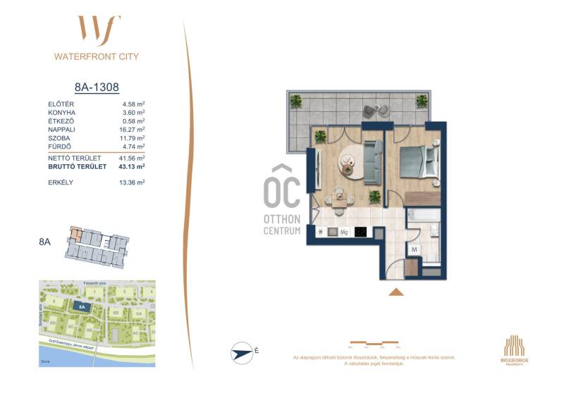 Projekt bemutatásaA projektrőlA Waterfront City egy új, modern városnegyed a 3. kerületben, ahol a természet közelsége és a városi kényelem tökéletes egyensúlyban van. A Duna-part közvetlen szomszédságában elhelyezkedő fejlesztés különleges atmoszférát kínál: a sétányt új épületek határolják, üzletekkel, kávézókkal és szolgáltatásokkal, amelyek élhető közösségi teret teremtenek.A 13 emeletes lakóépületből lenyűgöző örökpanoráma nyílik a budai hegyekre és a folyóra, a tágas teraszok pedig ideálisak a pihenéshez vagy a baráti összejövetelekhez. A zöldtetők, parkosított terek és fenntartható megoldások – mint az energiatakarékos rendszerek és okos otthon funkciók – mind hozzájárulnak a modern, környezettudatos életstílushoz.Látogass el értékesítési irodánkba, és tekintsd meg a városnegyed makettjét személyesen! Ismerd meg, milyen lesz az élet Budapest egyik legizgalmasabb új fejlesztésében!Óbuda szívébenKépzeld el, ahogy egy napsütéses délelőttön Óbuda szívében sétálsz, a Duna közelsége frissítően hat rád, miközben a Folyamőr utca, a Miklós tér és a Bogdáni út által határolt, öt hektáros területre érsz. A levegőben ott van a város történelme, mégis minden részletében a jövő hívogat.A 50 000 négyzetméteres területen egy hangulatos sétány vezet végig, amely egyenesen az óbudai Fő térre visz – mindössze 600 méterre. Ez a sétány nem csupán összeköt, hanem élményt nyújt: a Kolosy térről induló Óbudai Promenád részeként a város egyik legélhetőbb, legpezsgőbb szakaszán haladsz végig. És ha biciklivel érkeznél? A nemzetközi kerékpárút is itt halad el, Szentendre felé vezetve.Az 5. ütemben épülő 149 lakás mindegyike egyedi hangulatot kínál. Ahogy belépsz egy-egy otthonba, a hatalmas üvegfelületeken át beáradó fény és a tágas, szellős terek azonnal magukkal ragadnak. A kilátás? A Kaszap István park zöldje nyújt békét, míg a felsőbb emeletekről a Budai-hegység örökpanorámája tárul eléd – minden nap egy új festmény az ablakodban.A 6. ütemben 316 modern lakás épül, tágas teraszokkal és lenyűgöző kilátással a Dunára és a budai hegyekre. A lakók kényelmét őrszolgálat, kamerarendszer, mélygarázs, vendéglátóhelyek, belső park, játszótér és E-autó töltők szolgálják. Ez a projekt utolsó üteme, amely még közvetlen Duna-parti kapcsolattal rendelkezik.