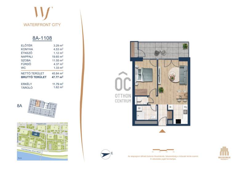 Projekt bemutatásaA projektrőlA Waterfront City egy új, modern városnegyed a 3. kerületben, ahol a természet közelsége és a városi kényelem tökéletes egyensúlyban van. A Duna-part közvetlen szomszédságában elhelyezkedő fejlesztés különleges atmoszférát kínál: a sétányt új épületek határolják, üzletekkel, kávézókkal és szolgáltatásokkal, amelyek élhető közösségi teret teremtenek.A 13 emeletes lakóépületből lenyűgöző örökpanoráma nyílik a budai hegyekre és a folyóra, a tágas teraszok pedig ideálisak a pihenéshez vagy a baráti összejövetelekhez. A zöldtetők, parkosított terek és fenntartható megoldások – mint az energiatakarékos rendszerek és okos otthon funkciók – mind hozzájárulnak a modern, környezettudatos életstílushoz.Látogass el értékesítési irodánkba, és tekintsd meg a városnegyed makettjét személyesen! Ismerd meg, milyen lesz az élet Budapest egyik legizgalmasabb új fejlesztésében!Óbuda szívébenKépzeld el, ahogy egy napsütéses délelőttön Óbuda szívében sétálsz, a Duna közelsége frissítően hat rád, miközben a Folyamőr utca, a Miklós tér és a Bogdáni út által határolt, öt hektáros területre érsz. A levegőben ott van a város történelme, mégis minden részletében a jövő hívogat.A 50 000 négyzetméteres területen egy hangulatos sétány vezet végig, amely egyenesen az óbudai Fő térre visz – mindössze 600 méterre. Ez a sétány nem csupán összeköt, hanem élményt nyújt: a Kolosy térről induló Óbudai Promenád részeként a város egyik legélhetőbb, legpezsgőbb szakaszán haladsz végig. És ha biciklivel érkeznél? A nemzetközi kerékpárút is itt halad el, Szentendre felé vezetve.Az 5. ütemben épülő 149 lakás mindegyike egyedi hangulatot kínál. Ahogy belépsz egy-egy otthonba, a hatalmas üvegfelületeken át beáradó fény és a tágas, szellős terek azonnal magukkal ragadnak. A kilátás? A Kaszap István park zöldje nyújt békét, míg a felsőbb emeletekről a Budai-hegység örökpanorámája tárul eléd – minden nap egy új festmény az ablakodban.A 6. ütemben 316 modern lakás épül, tágas teraszokkal és lenyűgöző kilátással a Dunára és a budai hegyekre. A lakók kényelmét őrszolgálat, kamerarendszer, mélygarázs, vendéglátóhelyek, belső park, játszótér és E-autó töltők szolgálják. Ez a projekt utolsó üteme, amely még közvetlen Duna-parti kapcsolattal rendelkezik.