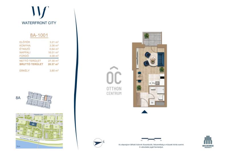 Projekt bemutatásaA projektrőlA Waterfront City egy új, modern városnegyed a 3. kerületben, ahol a természet közelsége és a városi kényelem tökéletes egyensúlyban van. A Duna-part közvetlen szomszédságában elhelyezkedő fejlesztés különleges atmoszférát kínál: a sétányt új épületek határolják, üzletekkel, kávézókkal és szolgáltatásokkal, amelyek élhető közösségi teret teremtenek.A 13 emeletes lakóépületből lenyűgöző örökpanoráma nyílik a budai hegyekre és a folyóra, a tágas teraszok pedig ideálisak a pihenéshez vagy a baráti összejövetelekhez. A zöldtetők, parkosított terek és fenntartható megoldások – mint az energiatakarékos rendszerek és okos otthon funkciók – mind hozzájárulnak a modern, környezettudatos életstílushoz.Látogass el értékesítési irodánkba, és tekintsd meg a városnegyed makettjét személyesen! Ismerd meg, milyen lesz az élet Budapest egyik legizgalmasabb új fejlesztésében!Óbuda szívébenKépzeld el, ahogy egy napsütéses délelőttön Óbuda szívében sétálsz, a Duna közelsége frissítően hat rád, miközben a Folyamőr utca, a Miklós tér és a Bogdáni út által határolt, öt hektáros területre érsz. A levegőben ott van a város történelme, mégis minden részletében a jövő hívogat.A 50 000 négyzetméteres területen egy hangulatos sétány vezet végig, amely egyenesen az óbudai Fő térre visz – mindössze 600 méterre. Ez a sétány nem csupán összeköt, hanem élményt nyújt: a Kolosy térről induló Óbudai Promenád részeként a város egyik legélhetőbb, legpezsgőbb szakaszán haladsz végig. És ha biciklivel érkeznél? A nemzetközi kerékpárút is itt halad el, Szentendre felé vezetve.Az 5. ütemben épülő 149 lakás mindegyike egyedi hangulatot kínál. Ahogy belépsz egy-egy otthonba, a hatalmas üvegfelületeken át beáradó fény és a tágas, szellős terek azonnal magukkal ragadnak. A kilátás? A Kaszap István park zöldje nyújt békét, míg a felsőbb emeletekről a Budai-hegység örökpanorámája tárul eléd – minden nap egy új festmény az ablakodban.A 6. ütemben 316 modern lakás épül, tágas teraszokkal és lenyűgöző kilátással a Dunára és a budai hegyekre. A lakók kényelmét őrszolgálat, kamerarendszer, mélygarázs, vendéglátóhelyek, belső park, játszótér és E-autó töltők szolgálják. Ez a projekt utolsó üteme, amely még közvetlen Duna-parti kapcsolattal rendelkezik.