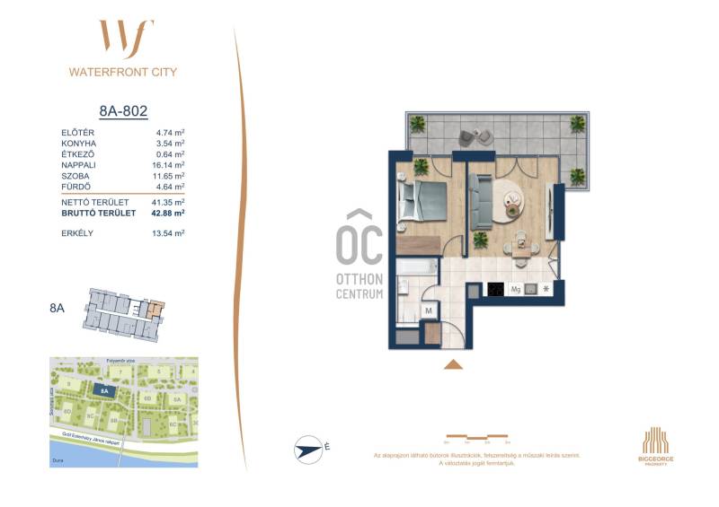 Projekt bemutatásaA projektrőlA Waterfront City egy új, modern városnegyed a 3. kerületben, ahol a természet közelsége és a városi kényelem tökéletes egyensúlyban van. A Duna-part közvetlen szomszédságában elhelyezkedő fejlesztés különleges atmoszférát kínál: a sétányt új épületek határolják, üzletekkel, kávézókkal és szolgáltatásokkal, amelyek élhető közösségi teret teremtenek.A 13 emeletes lakóépületből lenyűgöző örökpanoráma nyílik a budai hegyekre és a folyóra, a tágas teraszok pedig ideálisak a pihenéshez vagy a baráti összejövetelekhez. A zöldtetők, parkosított terek és fenntartható megoldások – mint az energiatakarékos rendszerek és okos otthon funkciók – mind hozzájárulnak a modern, környezettudatos életstílushoz.Látogass el értékesítési irodánkba, és tekintsd meg a városnegyed makettjét személyesen! Ismerd meg, milyen lesz az élet Budapest egyik legizgalmasabb új fejlesztésében!Óbuda szívébenKépzeld el, ahogy egy napsütéses délelőttön Óbuda szívében sétálsz, a Duna közelsége frissítően hat rád, miközben a Folyamőr utca, a Miklós tér és a Bogdáni út által határolt, öt hektáros területre érsz. A levegőben ott van a város történelme, mégis minden részletében a jövő hívogat.A 50 000 négyzetméteres területen egy hangulatos sétány vezet végig, amely egyenesen az óbudai Fő térre visz – mindössze 600 méterre. Ez a sétány nem csupán összeköt, hanem élményt nyújt: a Kolosy térről induló Óbudai Promenád részeként a város egyik legélhetőbb, legpezsgőbb szakaszán haladsz végig. És ha biciklivel érkeznél? A nemzetközi kerékpárút is itt halad el, Szentendre felé vezetve.Az 5. ütemben épülő 149 lakás mindegyike egyedi hangulatot kínál. Ahogy belépsz egy-egy otthonba, a hatalmas üvegfelületeken át beáradó fény és a tágas, szellős terek azonnal magukkal ragadnak. A kilátás? A Kaszap István park zöldje nyújt békét, míg a felsőbb emeletekről a Budai-hegység örökpanorámája tárul eléd – minden nap egy új festmény az ablakodban.A 6. ütemben 316 modern lakás épül, tágas teraszokkal és lenyűgöző kilátással a Dunára és a budai hegyekre. A lakók kényelmét őrszolgálat, kamerarendszer, mélygarázs, vendéglátóhelyek, belső park, játszótér és E-autó töltők szolgálják. Ez a projekt utolsó üteme, amely még közvetlen Duna-parti kapcsolattal rendelkezik.