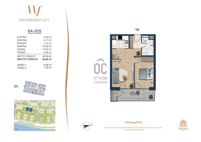 Projekt bemutatásaA projektrőlA Waterfront City egy új, modern városnegyed a 3. kerületben, ahol a természet közelsége és a városi kényelem tökéletes egyensúlyban van. A Duna-part közvetlen szomszédságában elhelyezkedő fejlesztés különleges atmoszférát kínál: a sétányt új épületek határolják, üzletekkel, kávézókkal és szolgáltatásokkal, amelyek élhető közösségi teret teremtenek.A 13 emeletes lakóépületből lenyűgöző örökpanoráma nyílik a budai hegyekre és a folyóra, a tágas teraszok pedig ideálisak a pihenéshez vagy a baráti összejövetelekhez. A zöldtetők, parkosított terek és fenntartható megoldások – mint az energiatakarékos rendszerek és okos otthon funkciók – mind hozzájárulnak a modern, környezettudatos életstílushoz.Látogass el értékesítési irodánkba, és tekintsd meg a városnegyed makettjét személyesen! Ismerd meg, milyen lesz az élet Budapest egyik legizgalmasabb új fejlesztésében!Óbuda szívébenKépzeld el, ahogy egy napsütéses délelőttön Óbuda szívében sétálsz, a Duna közelsége frissítően hat rád, miközben a Folyamőr utca, a Miklós tér és a Bogdáni út által határolt, öt hektáros területre érsz. A levegőben ott van a város történelme, mégis minden részletében a jövő hívogat.A 50 000 négyzetméteres területen egy hangulatos sétány vezet végig, amely egyenesen az óbudai Fő térre visz – mindössze 600 méterre. Ez a sétány nem csupán összeköt, hanem élményt nyújt: a Kolosy térről induló Óbudai Promenád részeként a város egyik legélhetőbb, legpezsgőbb szakaszán haladsz végig. És ha biciklivel érkeznél? A nemzetközi kerékpárút is itt halad el, Szentendre felé vezetve.Az 5. ütemben épülő 149 lakás mindegyike egyedi hangulatot kínál. Ahogy belépsz egy-egy otthonba, a hatalmas üvegfelületeken át beáradó fény és a tágas, szellős terek azonnal magukkal ragadnak. A kilátás? A Kaszap István park zöldje nyújt békét, míg a felsőbb emeletekről a Budai-hegység örökpanorámája tárul eléd – minden nap egy új festmény az ablakodban.A 6. ütemben 316 modern lakás épül, tágas teraszokkal és lenyűgöző kilátással a Dunára és a budai hegyekre. A lakók kényelmét őrszolgálat, kamerarendszer, mélygarázs, vendéglátóhelyek, belső park, játszótér és E-autó töltők szolgálják. Ez a projekt utolsó üteme, amely még közvetlen Duna-parti kapcsolattal rendelkezik.